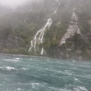 雨のおかげで、ミルフォードサウンドクルーズのときは、美しい白い滝をたくさん見ることができました。