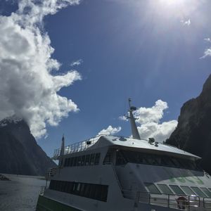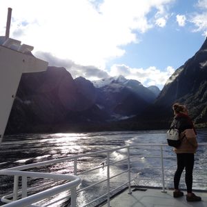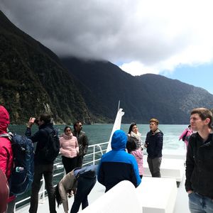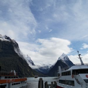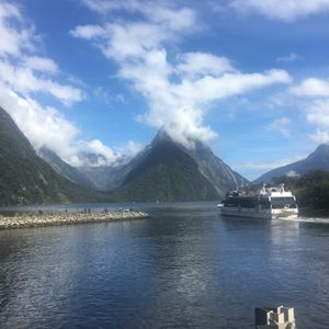 クイーンズタウンからミルフォードサウンドへの日帰りツアーは移動時間が長いので悩みましたが、せっかくの旅行なので!とゆうことで参加することにしました。朝5:35のピックアップ。バスは結構揺れましたので、バスで寝たい人は首枕があるといいと思います。大型バスと書いてましたがその日はルーフグラスバスでした。2時間ほど走ったところで30分休憩。朝ごはん食べたり昼ごはんを買ったり十分できます!その後はフォトスポットや国立公園で止まって10〜15分程度の散策を3回くらいさせてもらったので楽しくミルフォードサウンドまで過ごせました。港に到着するとすぐに3階建の船に乗り込み出発しました。1階は室内のみで、軽食の販売、2階は室内でスナックとコーヒーの販売に甲板、3階はルーフトップで場所の取り合い状態!でもそのうち室内に行く人もいるので、最初に座れなくても大丈夫だと思います。フィヨルドから見る山々の景色は本当に美しく気持ち良かったです!11月後半でも寒かったので、思い切り景色を楽しめるように防寒や、日によっては直射日光や暑さ対策を十分した方がいいと思います!あと、滝に近づくサービス?があるので屋外にずっといるとびちょびちょになりますのでご注意!クルーズが終わると乗ってきたバスに自分で向かい帰路へ。帰りもフォトスポットで何度か止めてくれ、行きと同じカフェで30分休憩を挟みクイーンズタウンへ戻りました。私は英語ができないんですが、英語ガイドでも説明は理解できないものの特に困ることもなく満喫できました。