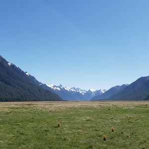 ミルフォードサウンドまでの車窓からはワカティプ湖を経て牧草地や山なと綺麗な景色が見られます。今回の旅行ではずっとレンタカーでしたが、運転中は運転に集中し景色をゆっくり楽しめないため、バスツアーでは窓の外の景色も楽しめて良かったです。ミルフォードサウンドまではかなり距離があるため、運転するのも大変だったと思いますし、今回はツアーに入って正解でした。