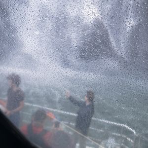 片道5時間かけて到着すると、すごい雨。。船もすごく揺れて全然綺麗な景色が見れませんでした。。