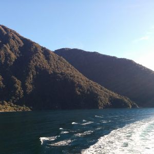 メインのクルーズは最高で、船上から眺める、冠雪の山々を背景とする、海へと迫る断崖、ゴンドワナ大陸時代からの温帯雨林を組み合わせた美しい景色には嘆息するばかり。冬場ながらも甲板に出てもさほど寒くなく、風を受けながら景色に溶け込むこともできた。