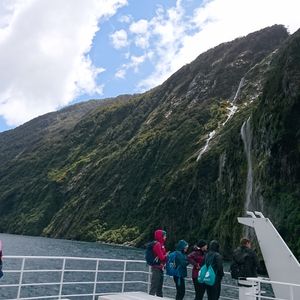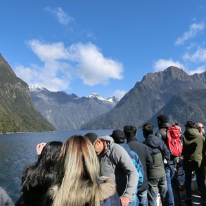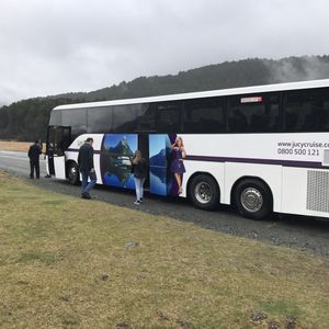ドライバー兼ガイドさんが、ミルフォードサウンドまでの道中、熱心に説明をして下さるので、バスに乗っている時間は長いですが、全く気になりませんでした。ミルフォードサウンドでは、滝に船を近づけて水圧を感じるイベントがありました。デッキで圧を感じたい方は雨具必須です。とても楽しいツアーでした。