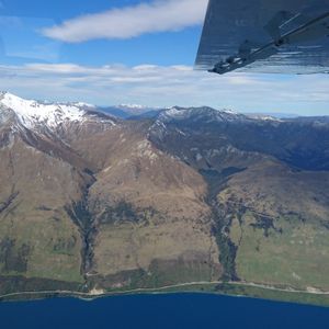 復路のセスナは、当初、6:4で飛ぶかどうか、と言われていたが、無事フライトでき、氷河が形成した山や渓谷、山頂近くの冠雪や氷河を見ながら、そして最後はワカティプ湖上を飛び、40分ほどでクイーンズタウンに、5時前にはホテルに戻ることができ、夕方以降の時間も有効に使うことができた。