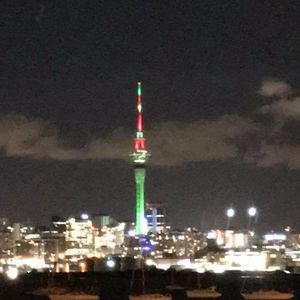 そして、ダウンタウンに帰るまでのオークランドの夜景も、タワーがクリスマス仕様で綺麗でした。