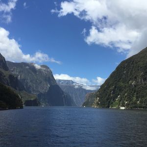 雄大なミルフォードサウンドに晴れ間が少し除いた景色、とても綺麗ですね。