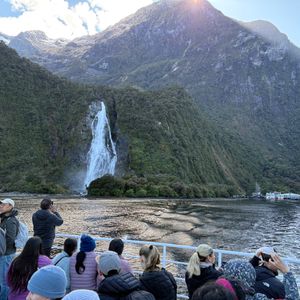 午前中は雨だったが、現地に到着する頃には天気は快晴になった。快晴時時のミルフォード・サウンドは景色の雄大さに感動することは間違いない。クルーズ上ではフィヨルドだけでなく、その絶壁に沿う大きな滝にも感動した。運が良ければ野生のイルカも見ることが出来る(私の場合はクルーズと並走するイルカ3匹を見ることが出来た)。