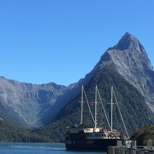 新婚旅行で利用しました。クイーンズタウン泊。朝は予定通りホテルまでタクシーで迎えに来ていただき、街中のリアルジャーニー(ツアー会社)の事務所へ。そこから天井までガラス張りの大型バスに乗り換えて5時間のバス移動。退屈するかと心配してましたが、担当してくださったマイクさん(日本人ガイド、真育さん)の日本語でのガイドが詳細で面白く、飽きませんでした。テアナウなど何度かの休憩と昼寝をしているうちに峰々に囲まれた森林地帯を走り、カール地形が特徴的な山岳地帯を抜けてクルーズの出発地へ到着。晴天に恵まれて気持ちも高まり、クルージングもその後の小型飛行機でのクイーンズタウンまでの飛行も最高に楽しいものでした。クルージングの際はピクニックランチを頂きましたが、景色を見ながら甲板で食べる軽食は丁度よくお勧めです。中国、日本の観光客の多さには驚きました。天気が良ければ帰りは飛行機がホントにお勧め。景色も最高でしたし、早く帰れるので街に戻ってから買い物や夕食などゆっくりと過ごせました。少し揺れが強いので乗り物に弱い方はお気を付けください。天候などのコンディションに左右される部分はありますが、ミルフォードサウンドツアーはNZ旅行のハイライトで間違いありません。いつかまた!
