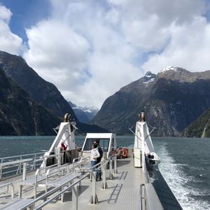 ドライバー兼ガイドさんが、ミルフォードサウンドまでの道中、熱心に説明をして下さるので、バスに乗っている時間は長いですが、全く気になりませんでした。ミルフォードサウンドでは、滝に船を近づけて水圧を感じるイベントがありました。デッキで圧を感じたい方は雨具必須です。とても楽しいツアーでした。