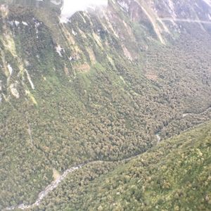 念願のミルフォードサウンド。ガイドさんがびっくりするくらいの快晴でした。当初は、バスで行き帰りもバスの予定でしたが、天気がいいからセスナで帰るのをオススメということだったので、その場で申し込みしました。空からしか見れない景色は圧巻でした。晴れていたので、滝の水量は少なめでしたが、イルカやオットセイも見られたので満足です。