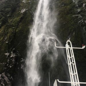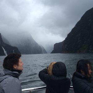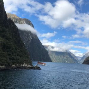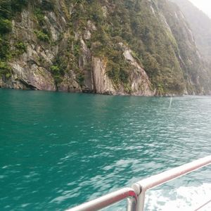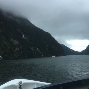 道中晴天でしがミルフォードサウンドに着いた頃には少々重い雲となりましたが雨は大丈夫でした。船に乗ってからは感動に尽きます!フィヨルド地形の滝の絶景、途中イルカが寄ってきてテンション上がりました!アザラシなども見れましたがペンギンは遭遇できず。。。船内ではランチ付きで予約していてカレーをチョイスしておきましたが美味しかったです。