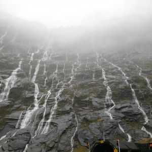 雨のおかげで、ミルフォードサウンドクルーズのときは、美しい白い滝をたくさん見ることができました。