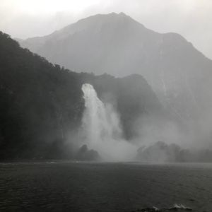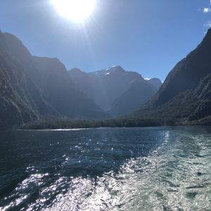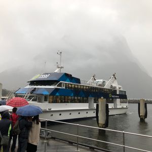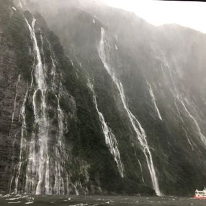 ミルフォードサウンドに着いてからはあいにくの雨で霧が濃かったですが、雨だからこその水量の滝が見れるという船のアナウンスを信じ、迫力のある風景が見れました。船が思ったより滝に近づいたのでびしょ濡れになっていた人もいましたが、楽しめました。