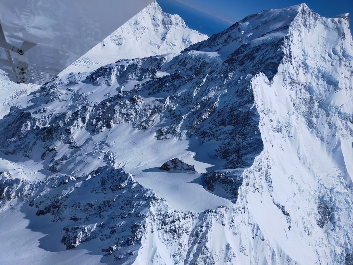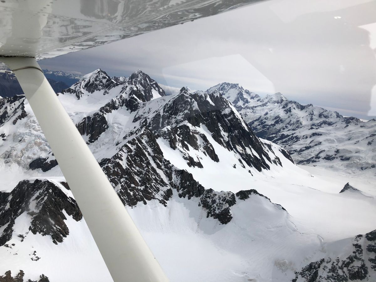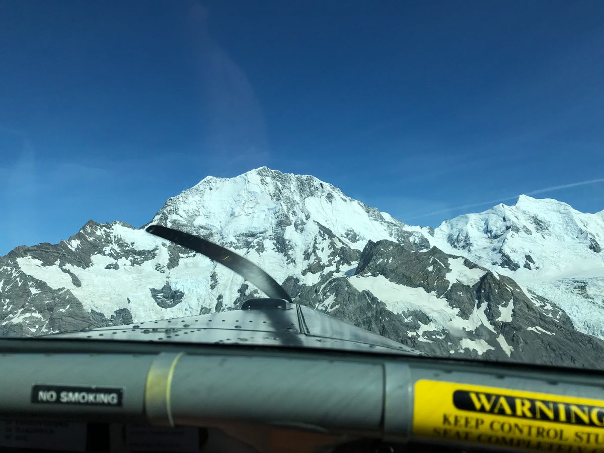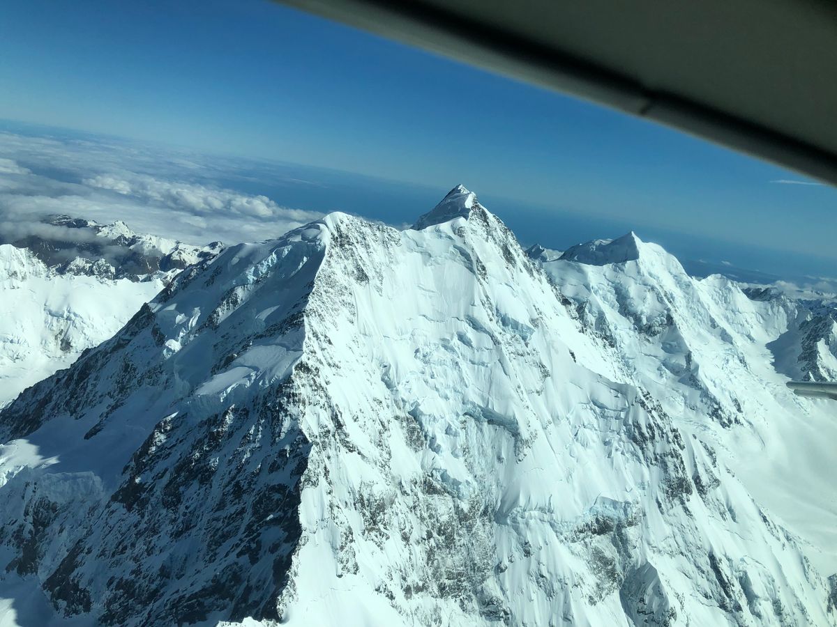 前日は夕方まで雨で夜は強風、中止になるのではないかと心配したが、快晴で壮大な山々、氷河に圧倒された。オーストラリアまで見渡すことができた。私の家族3名と中国からと思われる4人の団体で小型機に搭乗した。インド系と思われるAmitさんがパイロットで、人を押しのけてまで前の席に座ろうとする方々を制して助手席1名とその後ろ2名に私たち家族を振り分けてくれた。英語はキングスイングリッシュでわかりやすかった。なお、翌朝も霧と雲の天気で視界が悪かった。運がよかった。