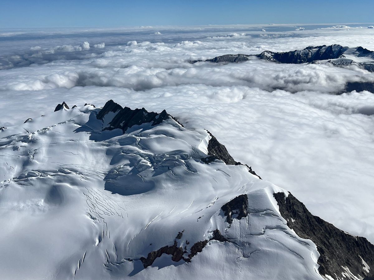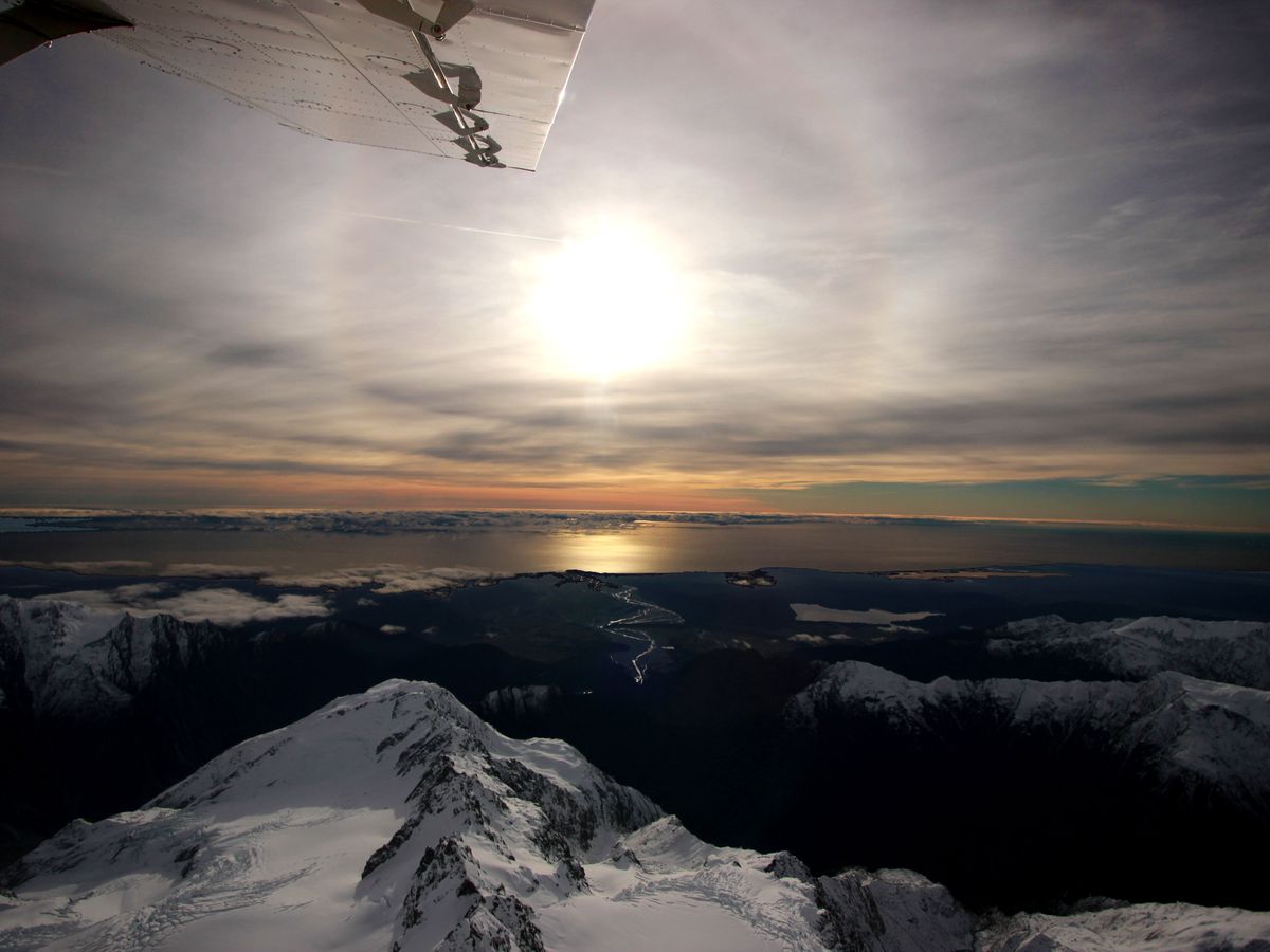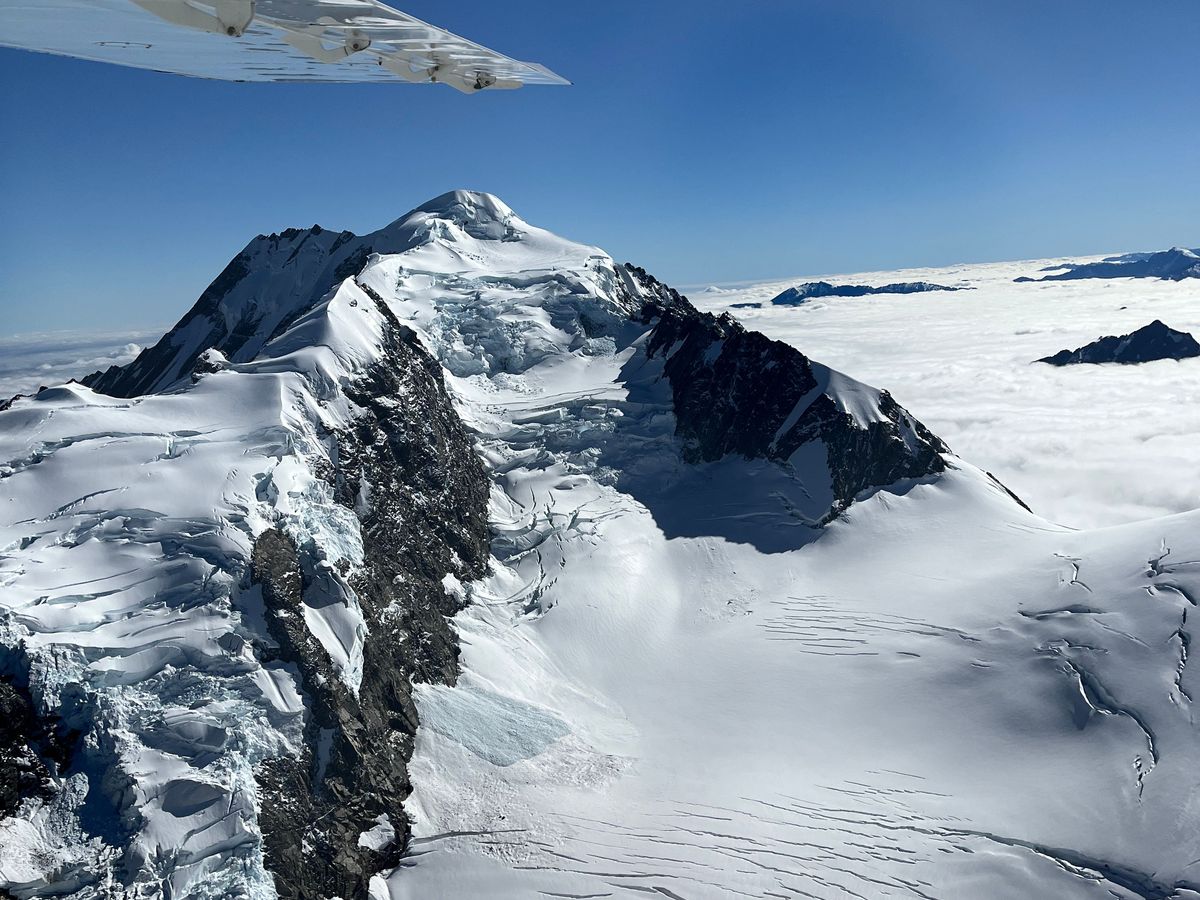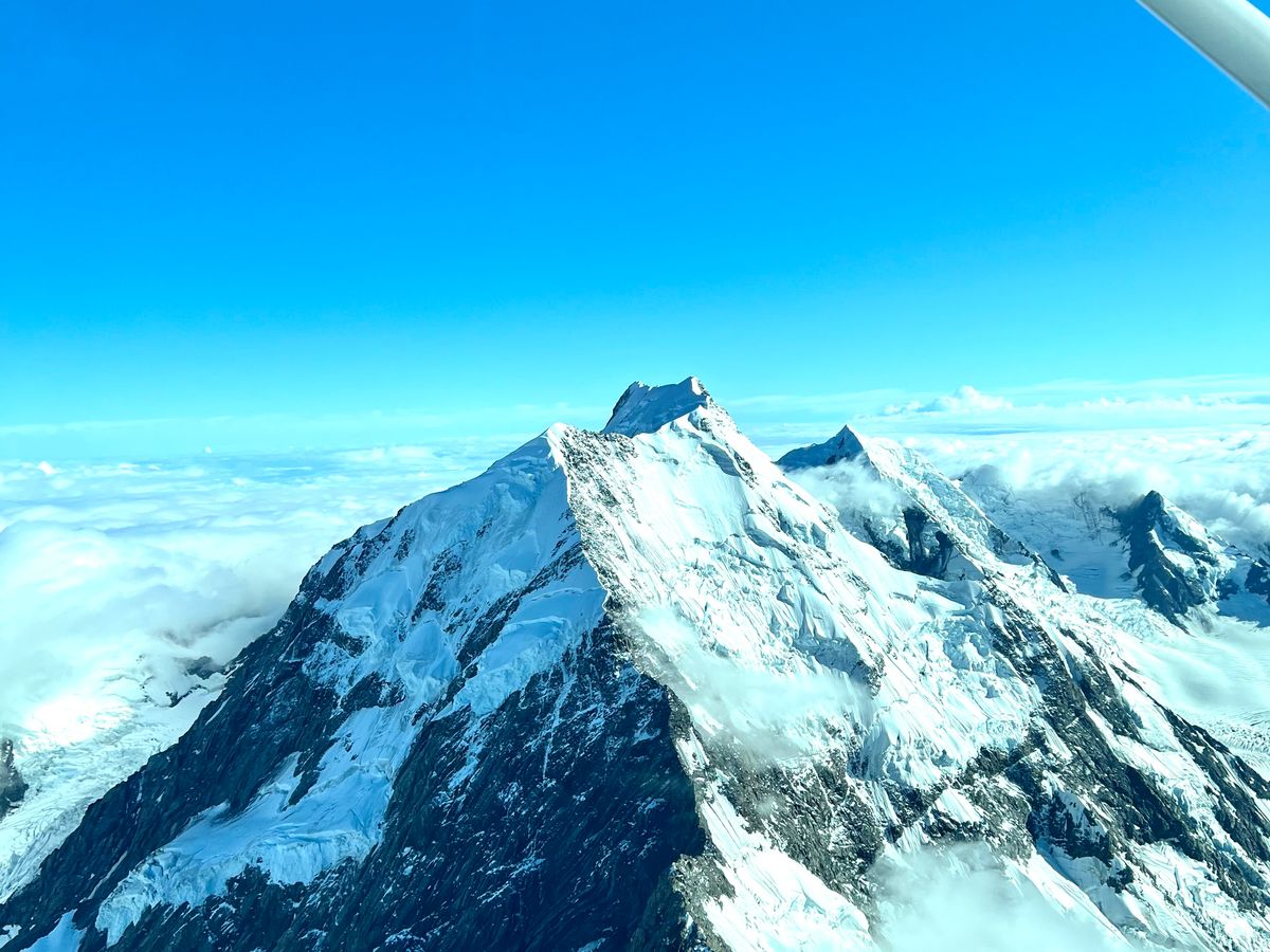前日は夕方まで雨で夜は強風、中止になるのではないかと心配したが、快晴で壮大な山々、氷河に圧倒された。オーストラリアまで見渡すことができた。私の家族3名と中国からと思われる4人の団体で小型機に搭乗した。インド系と思われるAmitさんがパイロットで、人を押しのけてまで前の席に座ろうとする方々を制して助手席1名とその後ろ2名に私たち家族を振り分けてくれた。英語はキングスイングリッシュでわかりやすかった。なお、翌朝も霧と雲の天気で視界が悪かった。運がよかった。
