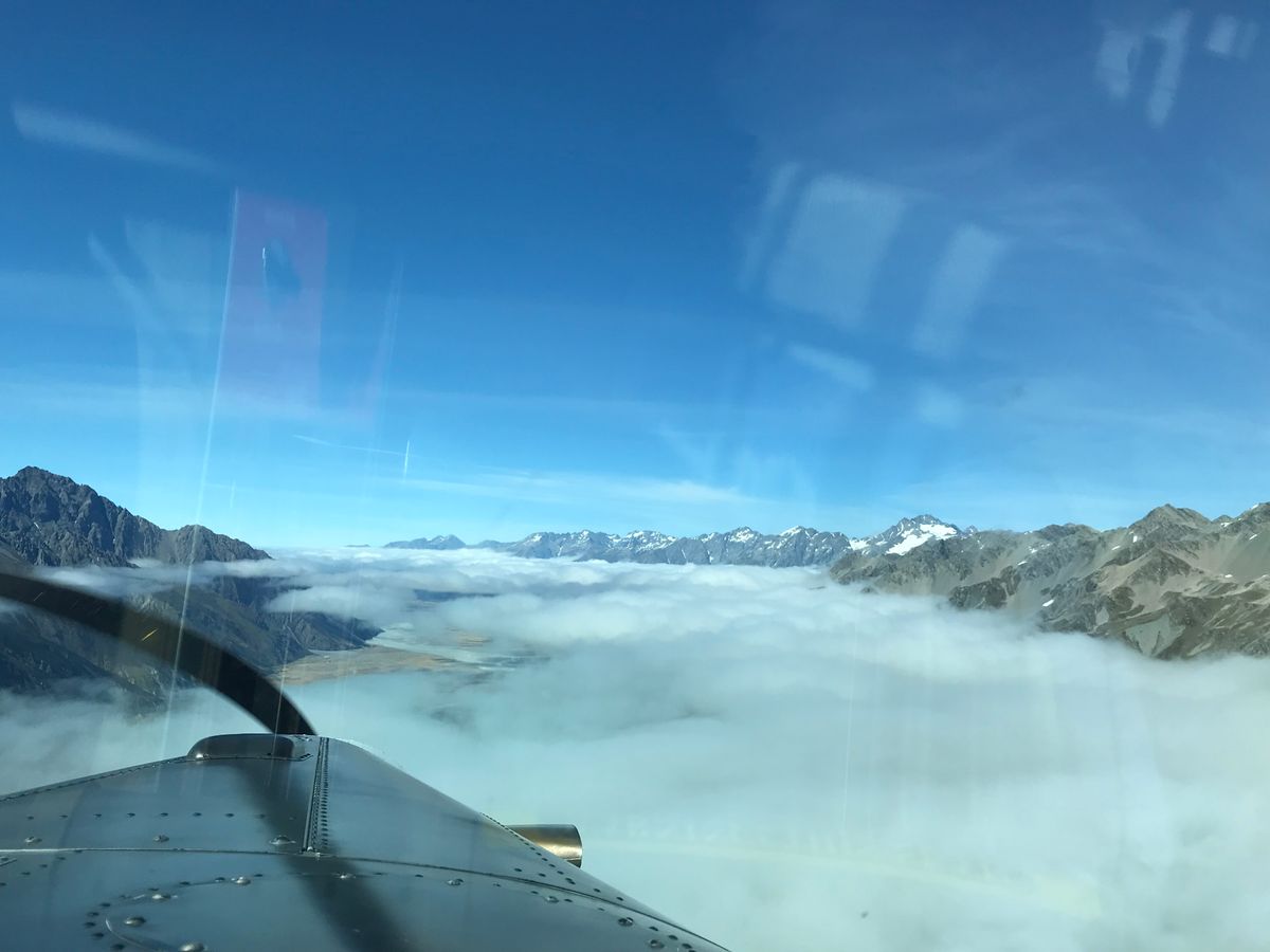 晴れ間は見えるもマウントクックは見えず…(>_<)移動日でもあったため時間切れかと思ったら飛ぶ!との知らせ!
