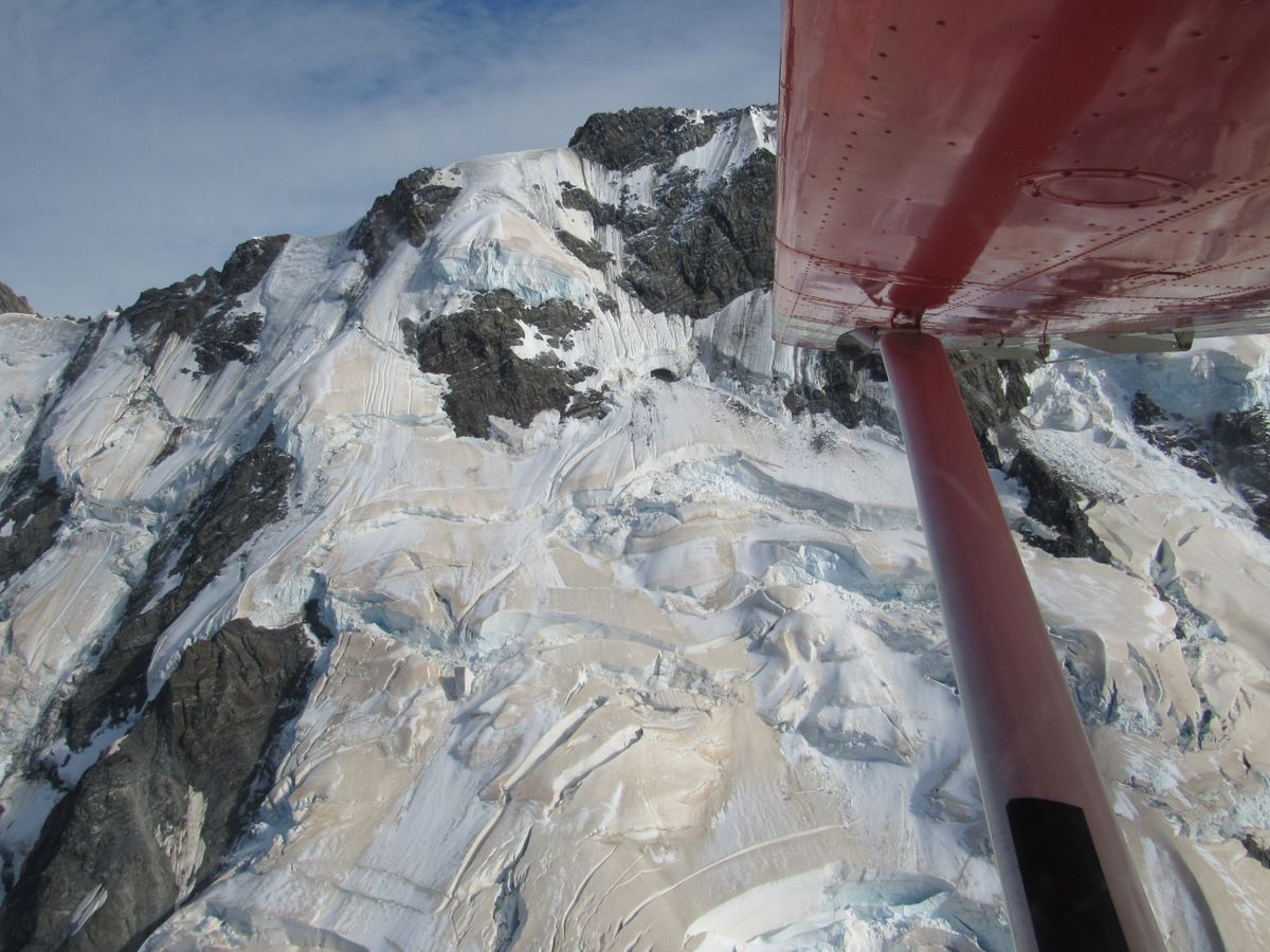 予約の前日に確認の電話をせよとのことだったので電話すると、今日はよい天気だから今から来れないかと聞かれ、予定もあいていたので予定を繰り上げての参加。風も弱くて揺れも少なく、何よりすばらしい天気に恵まれて、マウントクックを目線の高さ、間近で見ることができました。氷河も空からよく見えました。説明も何とか部分的には分かりました。