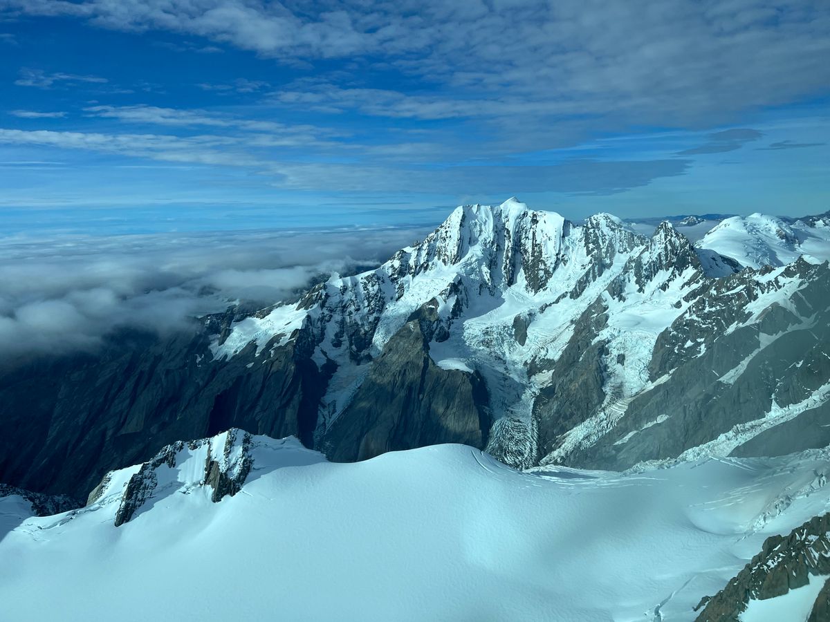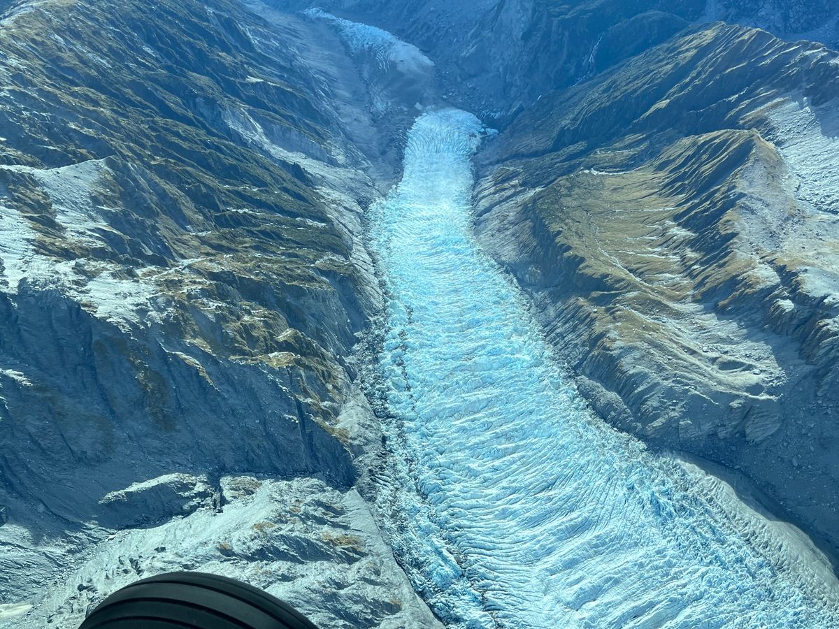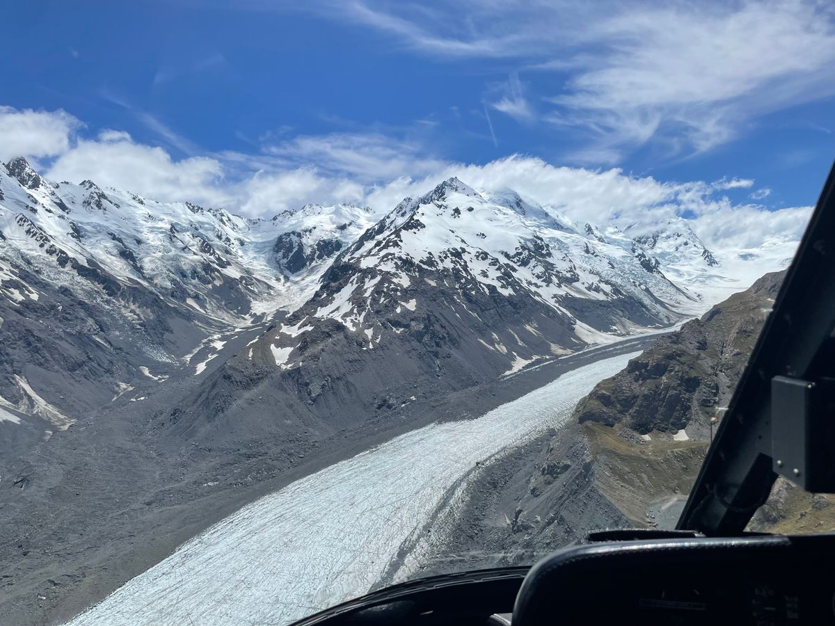 前日まで雨でしたが、好天に恵まれて、今回のニュージーランド旅行で最高の体験となりました。間近にマウントクックの峰を見ることができ、ランディング後は雄大な氷河をじっくりと堪能できました。一緒に乗った80歳代のご夫婦もとても興奮されていました。地上から見るよりはるかに良い絶景です。