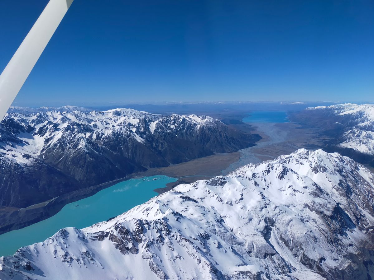 当日は晴天だったこともあり、テカポ湖などやマウントクック界隈の山々を間近に見ることができました。