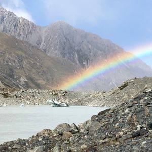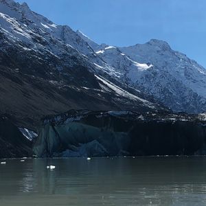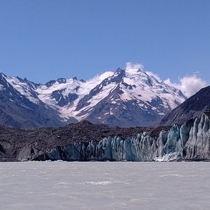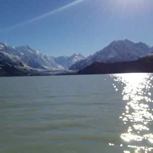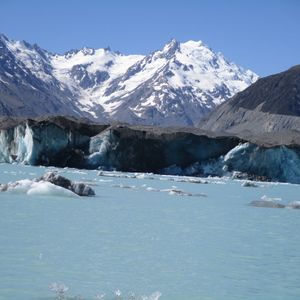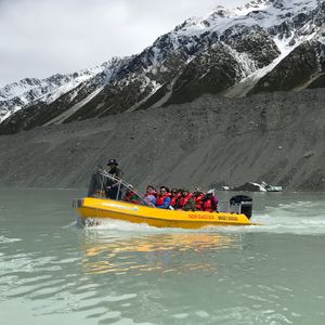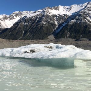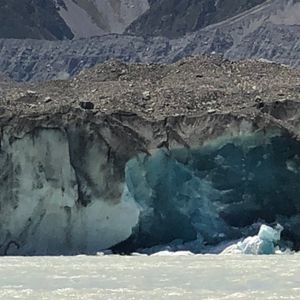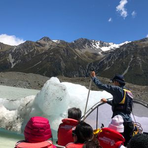 駐車場からミニトレイル後、ボートでタスマン湖へ。Mtクックに見下ろされながら、夏でも冷たい水を触ったり、ボートをわざと上下に動かしてくれたりを楽しみながら、青く光る氷河先端へ!大迫力!灰色のモレーンも迫力十分!ガイドさんの英語はよく分からなかったけれど、感覚は伝わってきてとても良かった!次は春先のまだ氷が多く残る頃に行きたい!