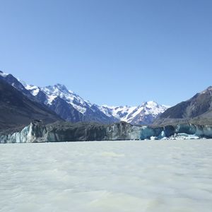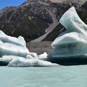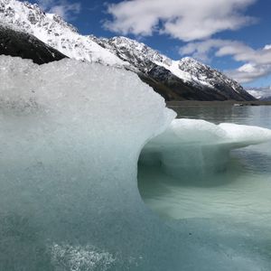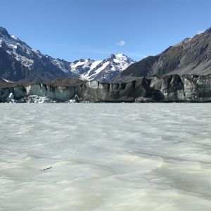 吸い込まれそうなブルーのタスマン氷河に削られた山肌や空気が含まれており、その氷河の成り立ちや歴史についてガイドさんが丁寧に教えてくれます。中々間近で氷河を見ることはできませんので、マウントクックに行くなら是非参加したいツアーです。