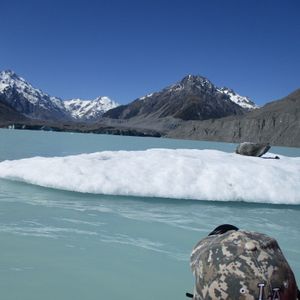 ニュージーランドの夏に訪れたせいか、写真にあるような大きな氷塊はありません。これの4分の1くらいが最大だったと思います。