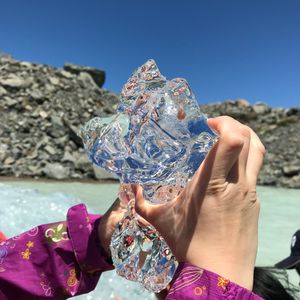 さらに、湖に浮かんだ氷河のところまで行き、近くの氷を手ですくって