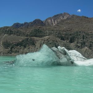 手前には氷河がみられなく、ガッカリ。。。と思ったら、奥へボートを進めるうちに大小の氷の塊が!