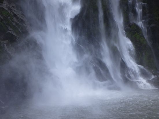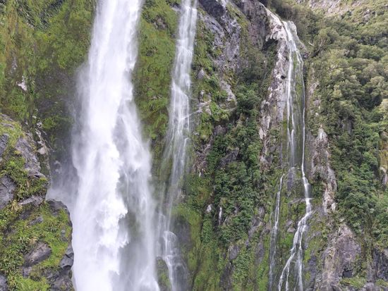 155mの高さからしぶきをあげて流れ落ちる、迫力満点のスターリング滝。滝に接近して大量の水しぶきが降りかかる瞬間は、このクルーズのハイライトです!