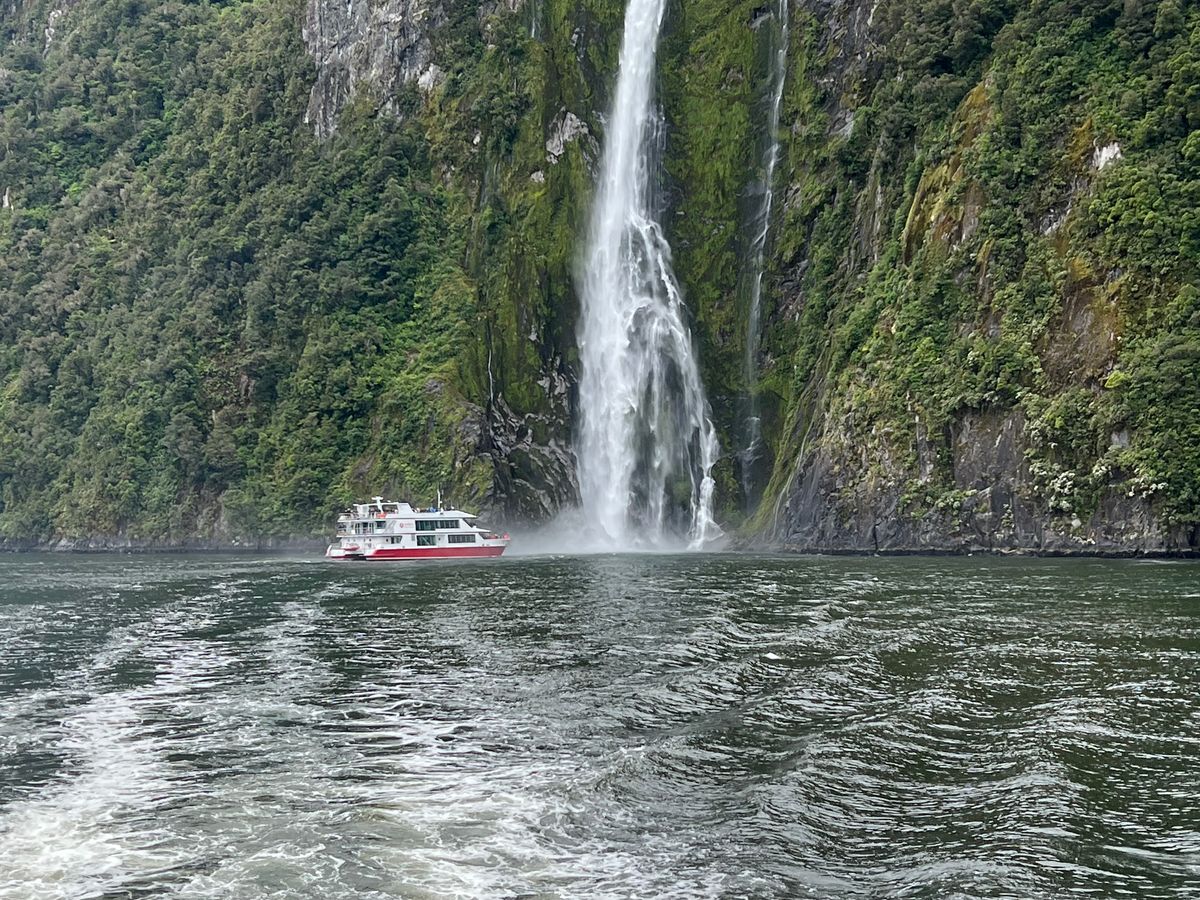 雨予報で天気を心配しましたが、運良く雨に濡れずに遊覧船を楽しむ事ができました。ミルフォードサウンドに着く前に、何度か見どころでバスは止まってくれて、素敵な写真が撮れました。遊覧船からは滝以外にも、オットセイ・イルカ・海かもめを観察する事ができました。ただ、帰りのセスナが悪天候のため飛ばず来た時と同じバスで帰る事になったのが少し残念でした。