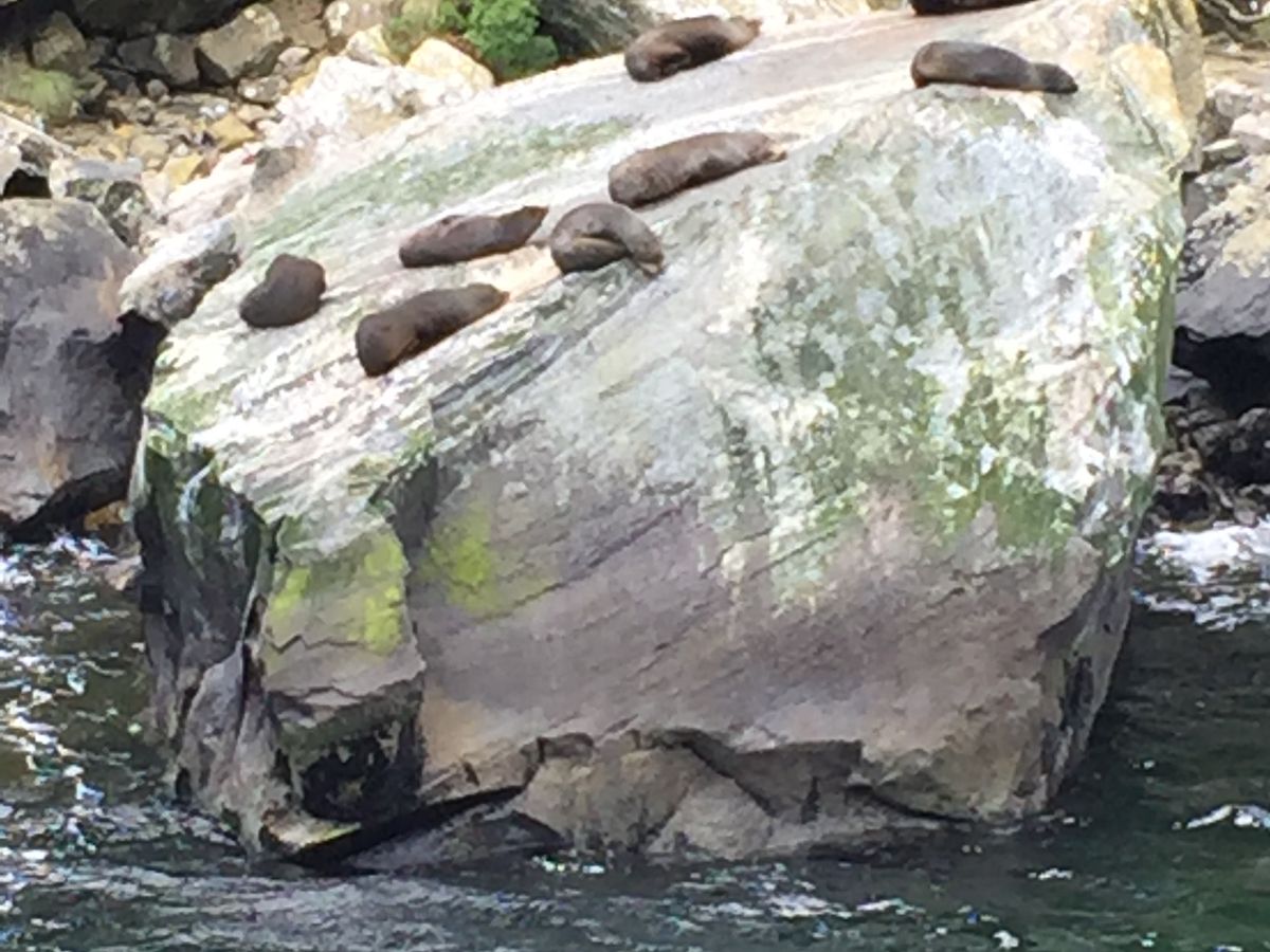 ミルフォードでは、岩場でオットセイの子供たちが日向ぼっこをしている姿を見る事ができました。滝の近くに船を寄せた時には甲板に出ていた人たちはびしょ濡れになって楽しんでいました。