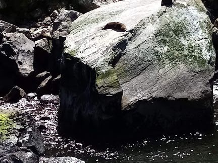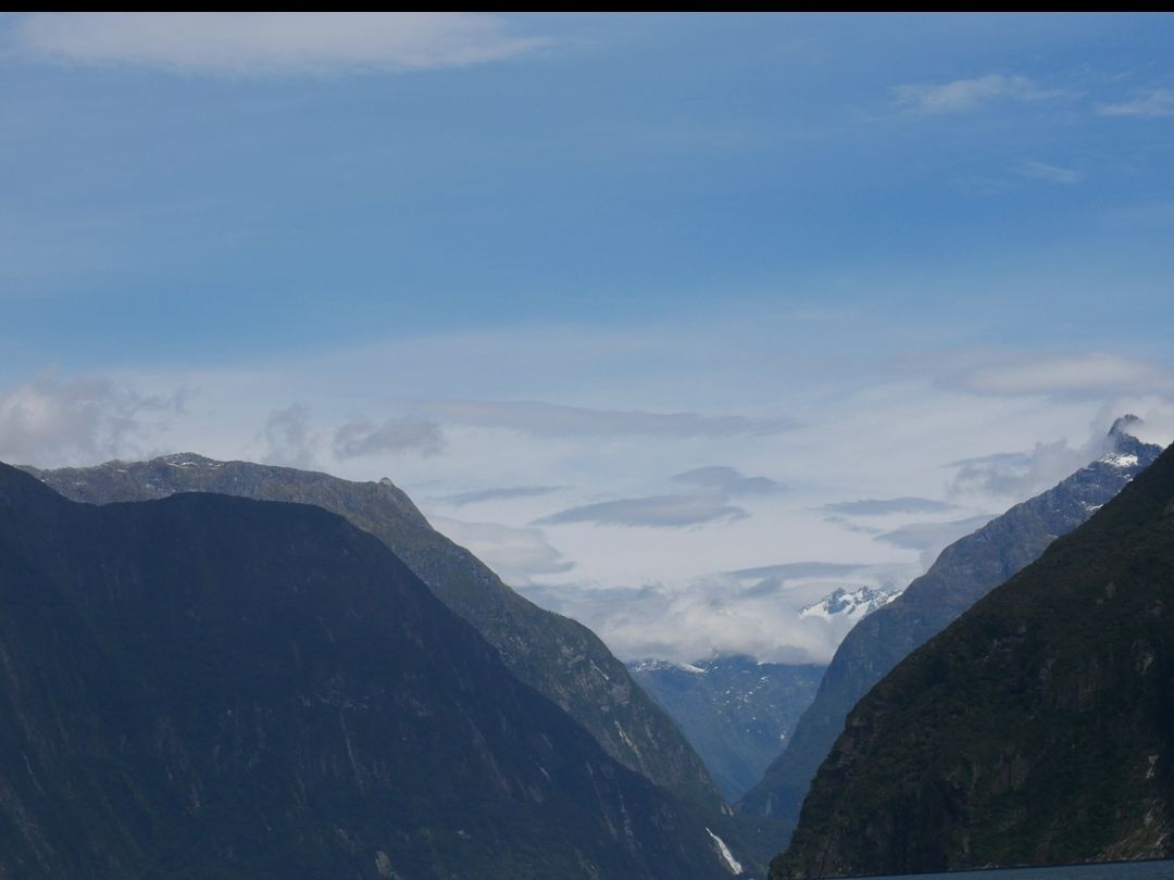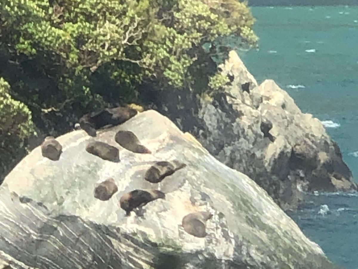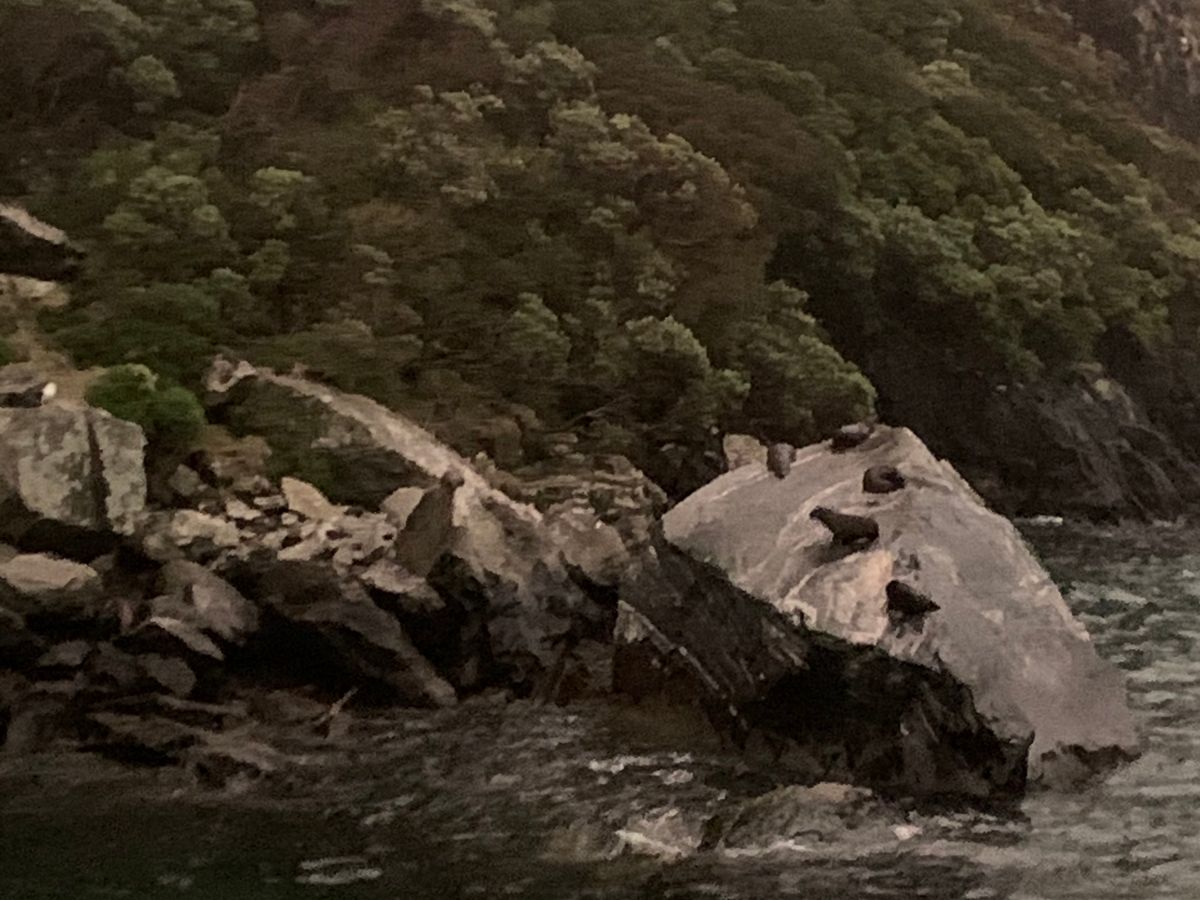 ミルフォードサウンドに近づくに連れ雲行きが怪しくなり、到着した時は霧のような雲と雨で何も見えない状況で乗船し見えたのは崖上からと思われる滝の飛沫と大きな岩で休憩するオットセイ親子だけでした。ガッカリ。