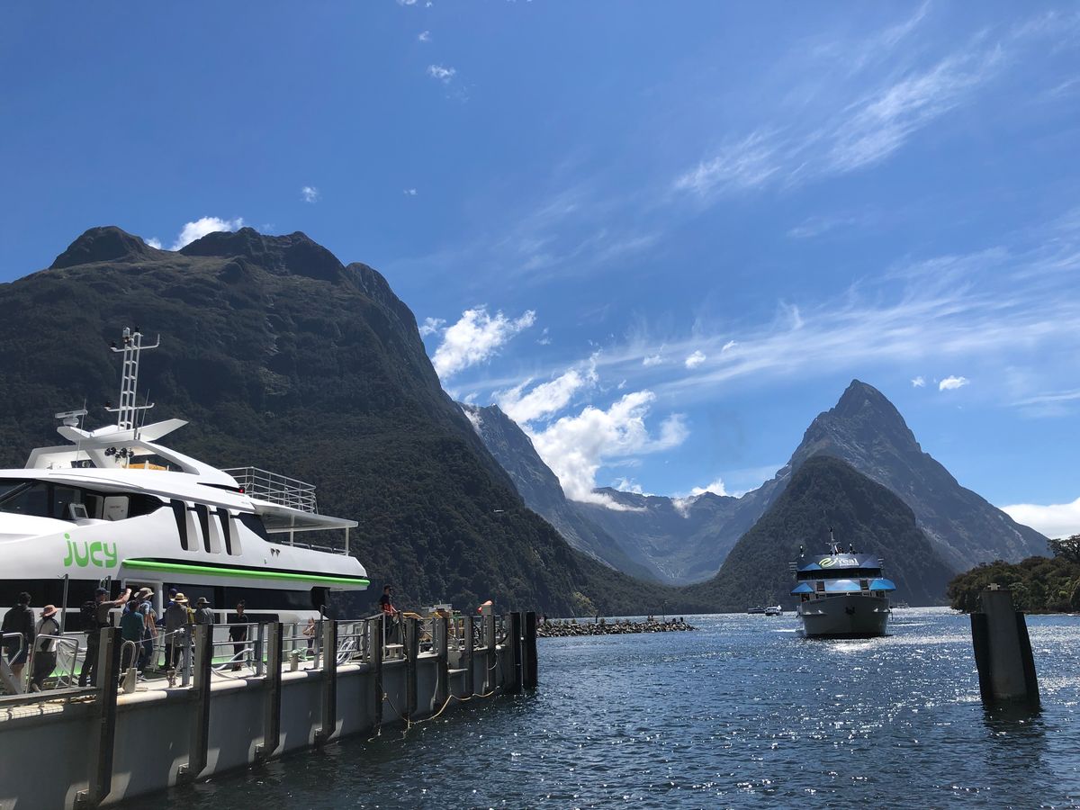 レンタカーで行くかツアーにするか迷ったのですが、ツアーで正解でした。ミルフォードサウンド へ行く途中、いくつかのスポットで停車して写真を撮る時間がありました。船はとても綺麗で、ゆっくりと景色を見ながら遊覧できました。滝は大迫力で、あんなに近づけるとは思いませんでした。大満足のツアーでした。
