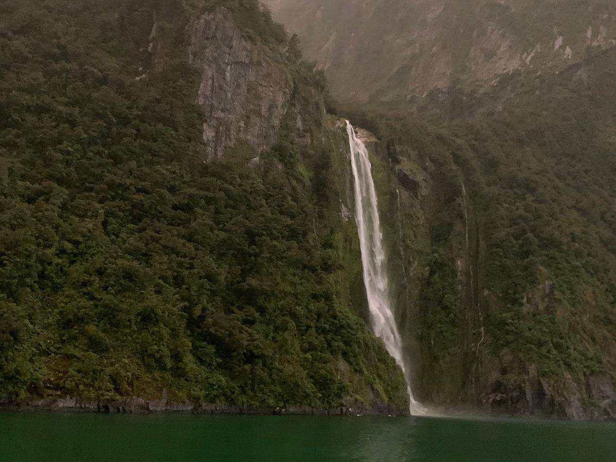 午前中は雨が降っており、青い湖は見れませんでしたが、滝の水の量が多く逆にそれはそれでよかったです。クルーズ時間も長すぎず短すぎずちょうどよかったと思います。無料の紅茶があり、少し寒かったので温まることができました。一度滝の水がかかるくらいのかなり近い場所まで寄ってもらえたので、とても迫力がありました。行きと帰りのバスではニュージーランド特有なのかもしれませんが、バスの運転手さんがずっと英語で観光案内をしてくれてとても楽しかったです。ミルフォードサウンドまでの道のりは長いですが、それまでもきれいな景色を見ることができて、かなりいいです。バスの途中も景色のよいポイントによってくれるので、そこも楽しめました。