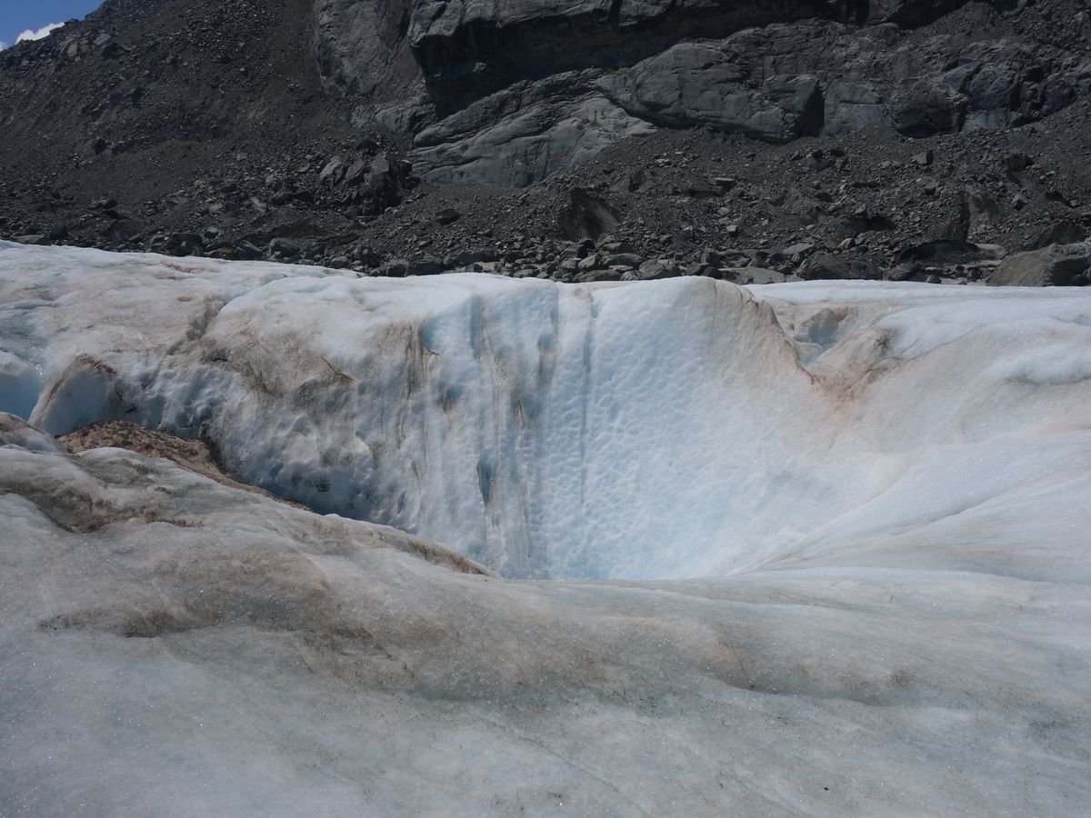 深いクレバスも熟練のガイドさんが先に渡って足場を作ってくれるので、よっぽど足の弱い人でなければ大丈夫だと思います。