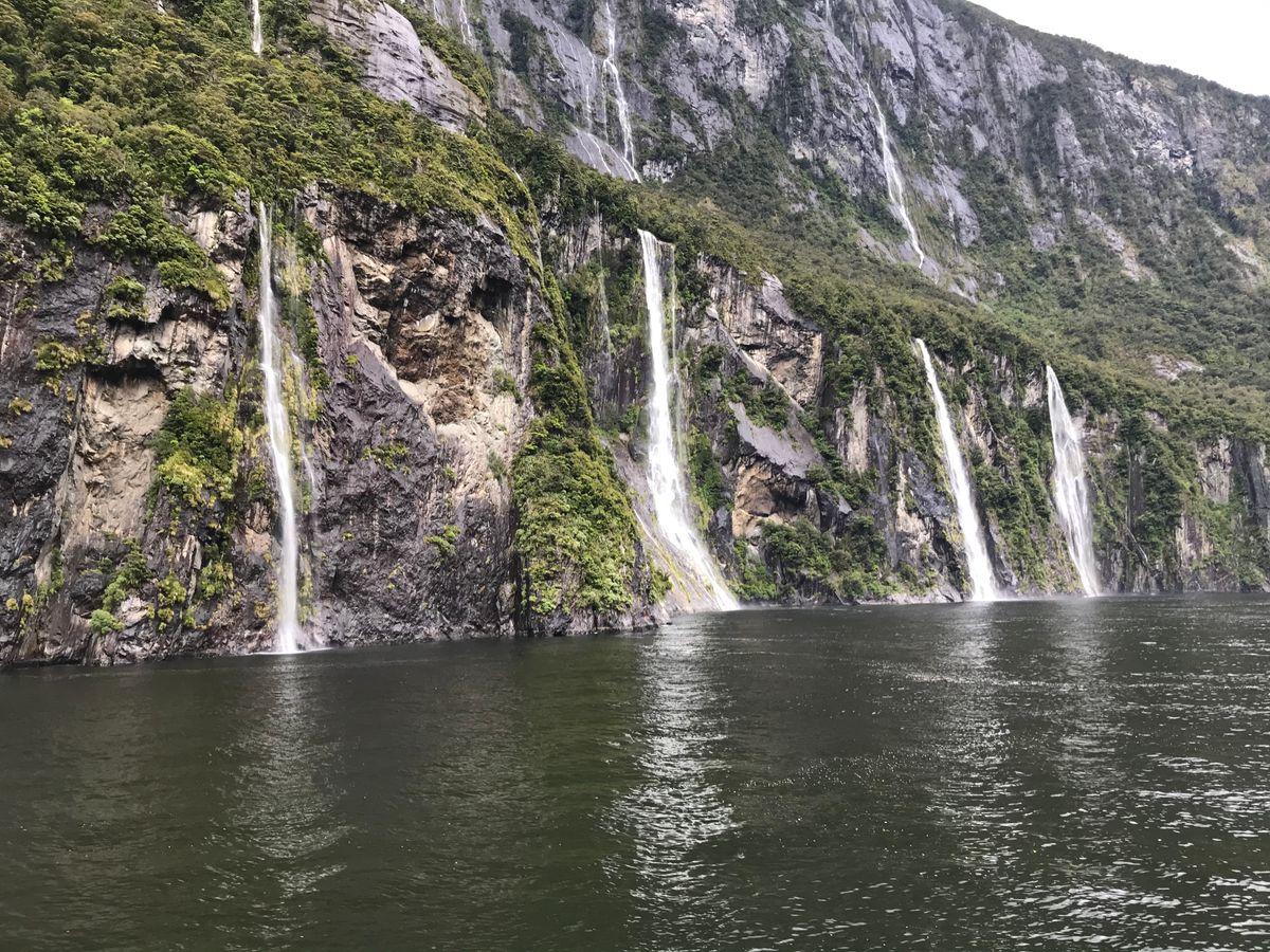 ミルフォードサウンドはとにかく圧巻の景色!2時間弱のクルーズで壮大な景色を満喫した。
