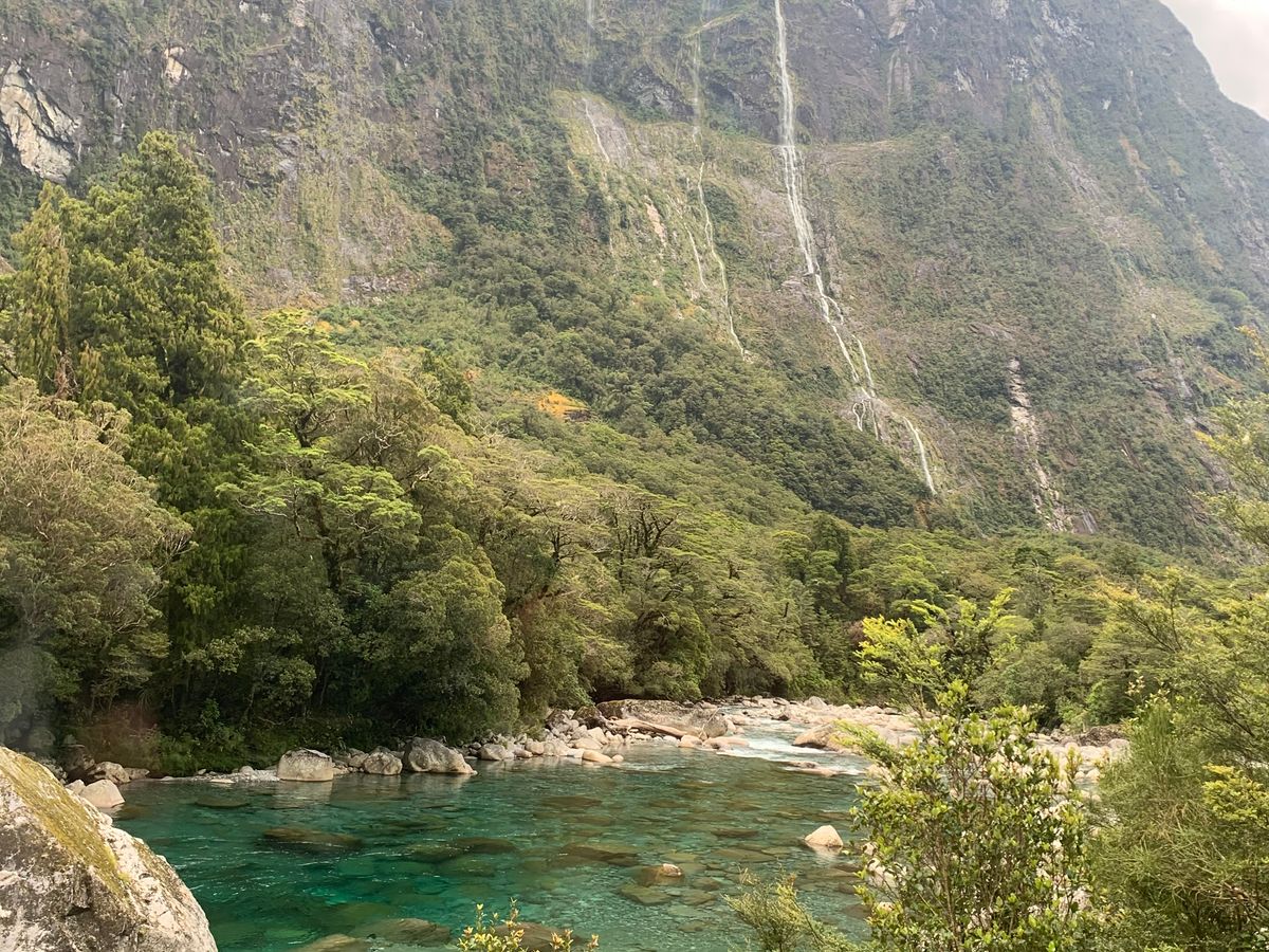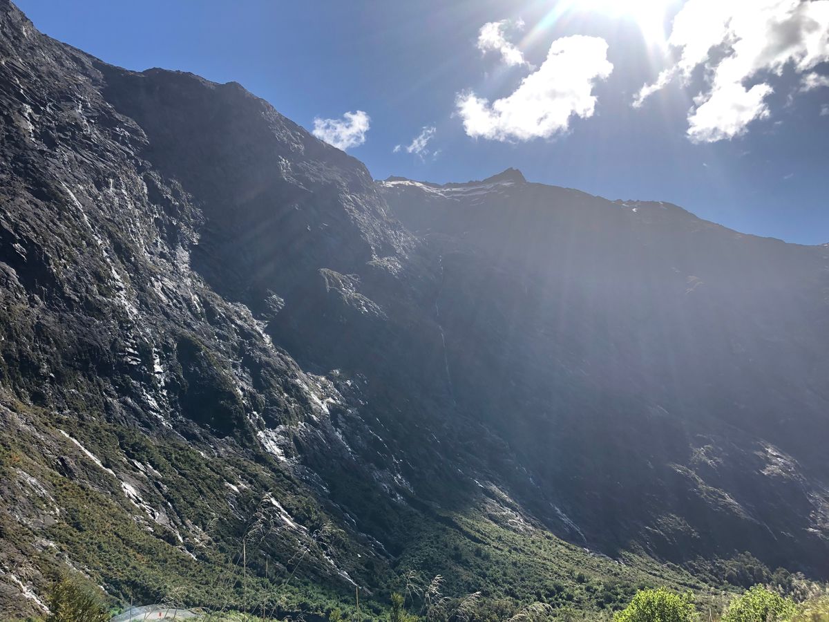 この場所はニュージーランドで最も降水量が多い場所らしいのですが、少し曇っただけで素晴らしい景色を見られました。