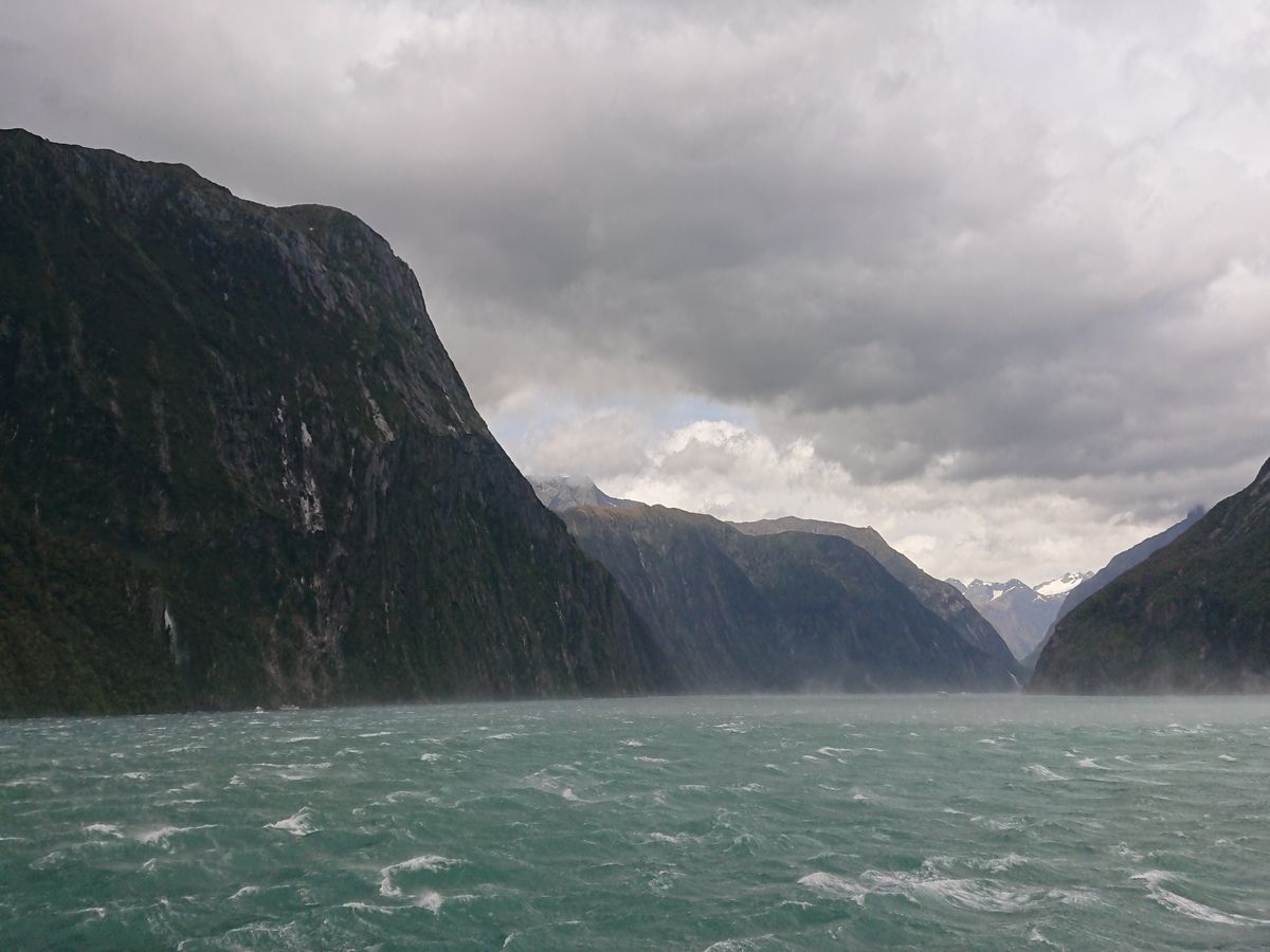 今回日程に余裕があったため、そろそろ行ってみるかと参加。クイーンズタウンは薄曇りでしたが、ミルフォードに近付くにつれ土砂降りに…乗船前の待ち時間だけでずぶ濡れになり、とてもデッキで風景を楽しむような天気ではありません。ほぼ船内で、暴風雨で真っ白な窓の外を見ている時間になりました。