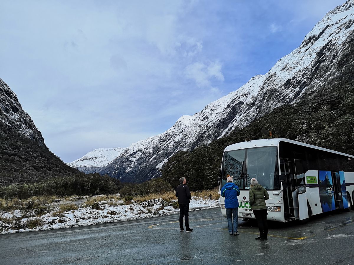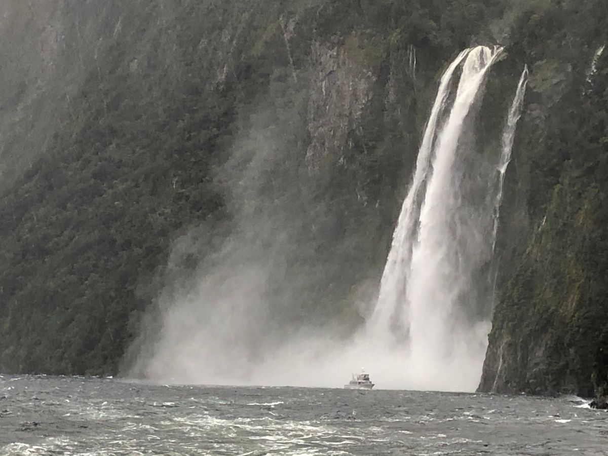 ミルフォードに向かうにつれ大雨と風が強くなり、観光はさんざんでした。途中の写真スポットも最後は降車せずにいたところ、ドライバーが曇った窓を順番に拭いてくれました。少し日本語で冗談を言ったり、雨で沈んだ気分を和ませてくれました。私たちの後のツアーはキャンセルになったという日で、船も揺れ、帰りはバスで酔ってしまいました。綺麗な景色は見れませんでしたが、一緒に行った他の方達とランチしておしゃべりしたり、大雨の中を船が滝に突っ込んだ時にはみんな大盛り上がりで楽しかったです。