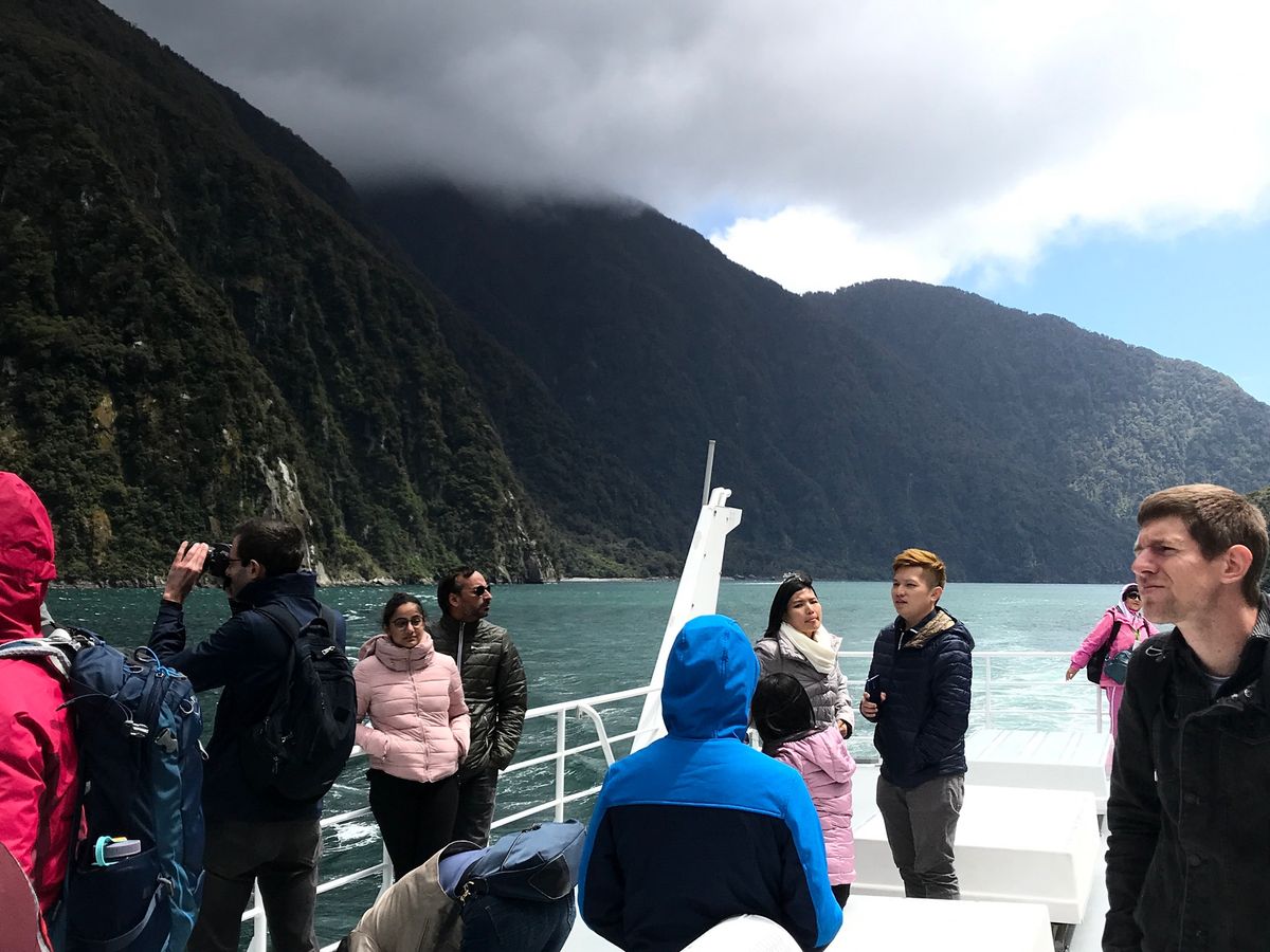 クイーンズタウンでの滞在の間にこのツアーを予約して参加しました。朝早くから様々な名所を日本語の解説付きで巡りながら向かいます。まず、スタッフさんの説明の上手さに驚き、相方とすごいねといいながら長い道中も楽しみました。フェリーはとても大きく快適で、晴れていたこともありほとんどの時間を展望デッキで過ごしました。ミルフォードサウンドは想像以上の絶景で、移りゆく圧巻の景色を堪能することができ、大満足のツアーでした。クイーンズタウンを訪れる際は是非参加されることをおすすめします!