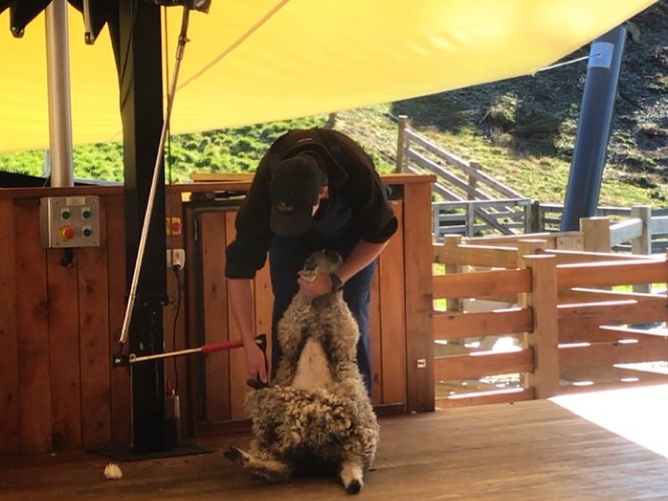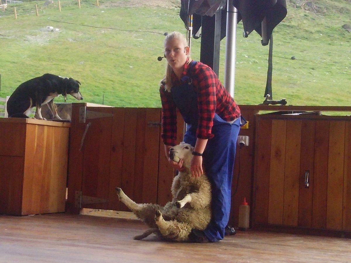 ワカティプ湖をクルーズして牧場に到着後、直ぐに羊毛の刈込みショーとシープドックの羊の追い込みショーを見学。羊刈りのプロは1頭を40秒で刈り込むと聞いていたので、よく見てないと…と意気込んで臨みましたが、観光のためのショーなので数分かけて刈るので、段々と羊の毛が刈られていく様子を楽しむことができました。