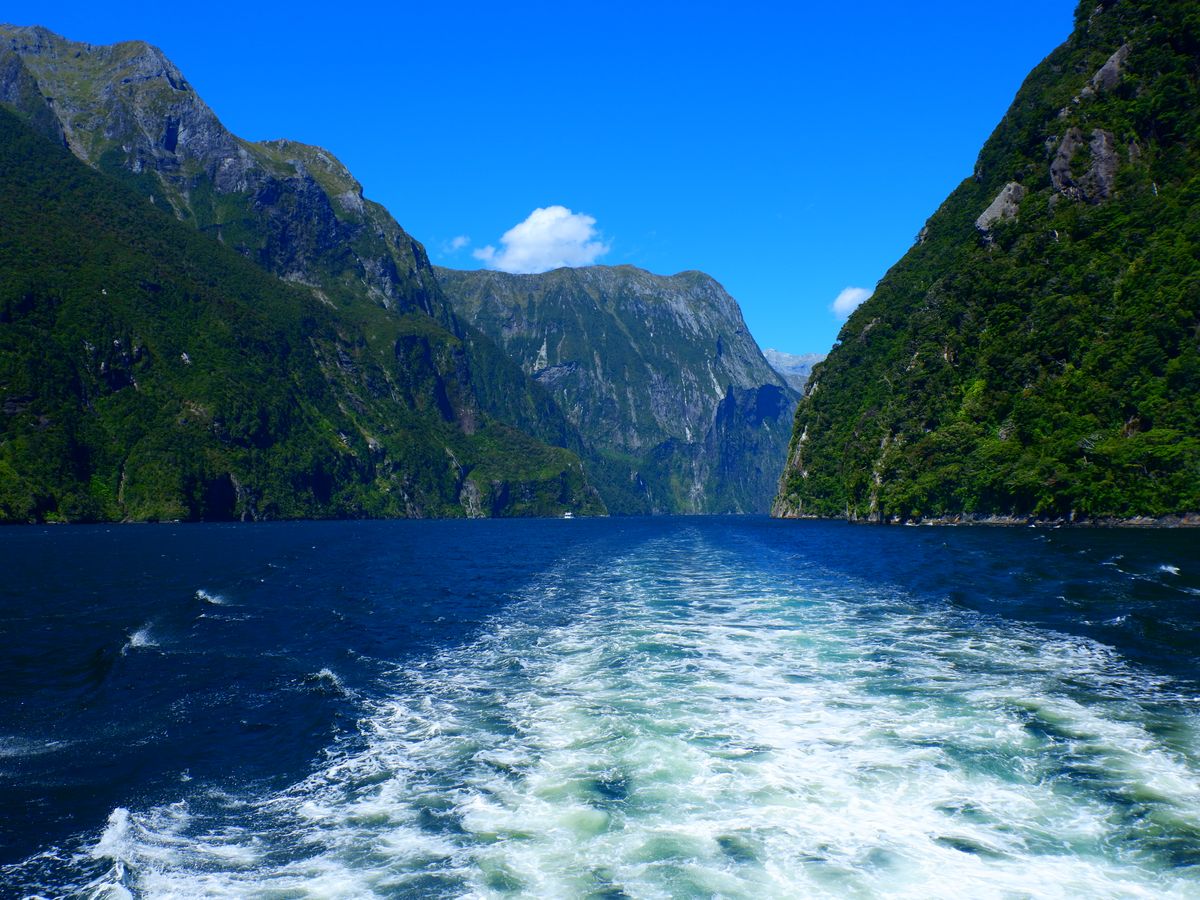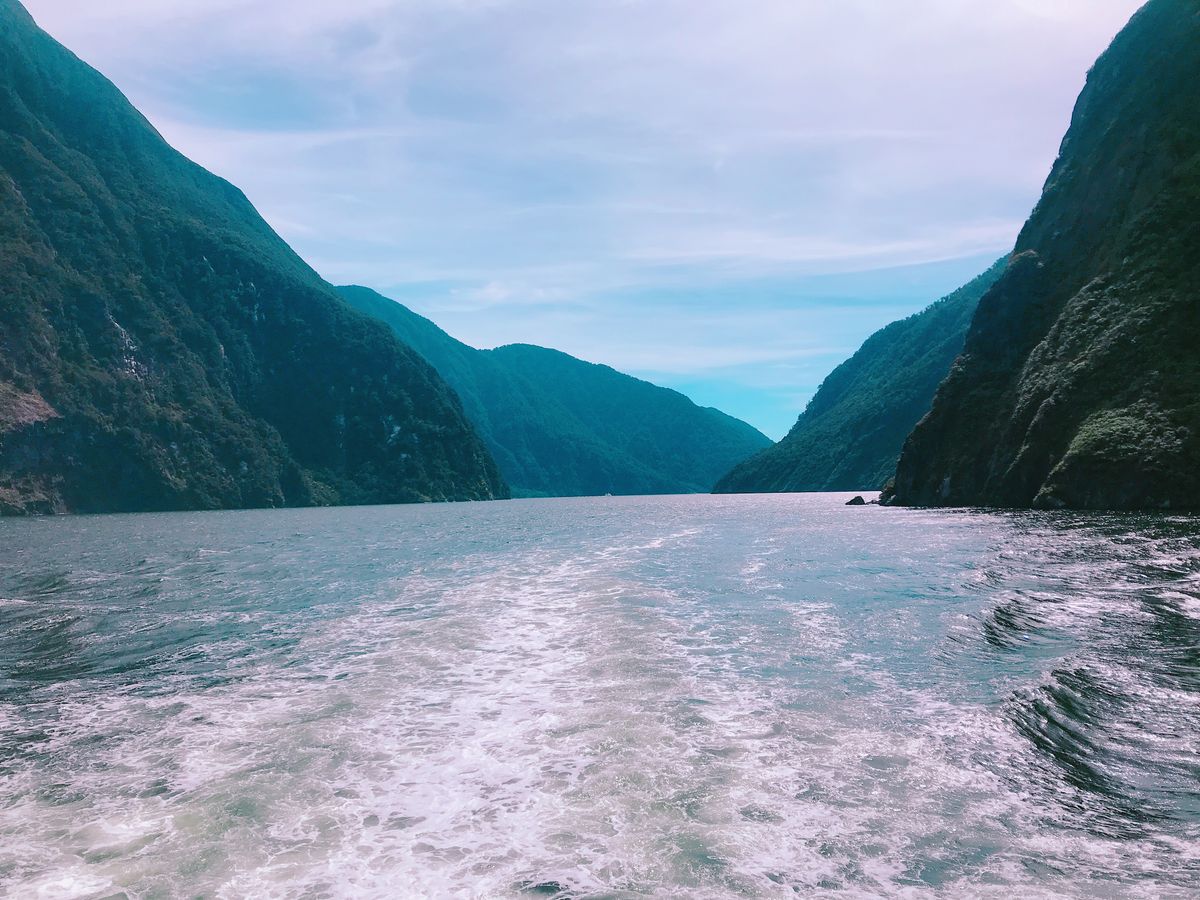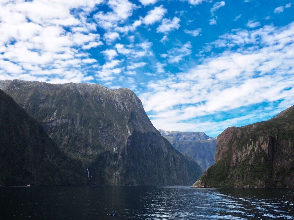 そして、すぐにクルーズに乗り込み出発しました。広がる景色は壮大で、日本ではまず見られない壮大なスケールに圧倒されっぱなしでした。ナイアガラの滝の3倍はあるという滝も周りの山々が大きすぎて、小さい滝にしか見えず、縮尺が狂いっぱなしです笑フィヨルドに行くまでの途中に立ち寄ったテアナウで購入したマフィンとミートパイを頬張りつつ、船から見る景色は贅沢の一言に尽きます。やはり晴れで見る景色は格別で本当に運が良かったなあと今更ながら思っています。