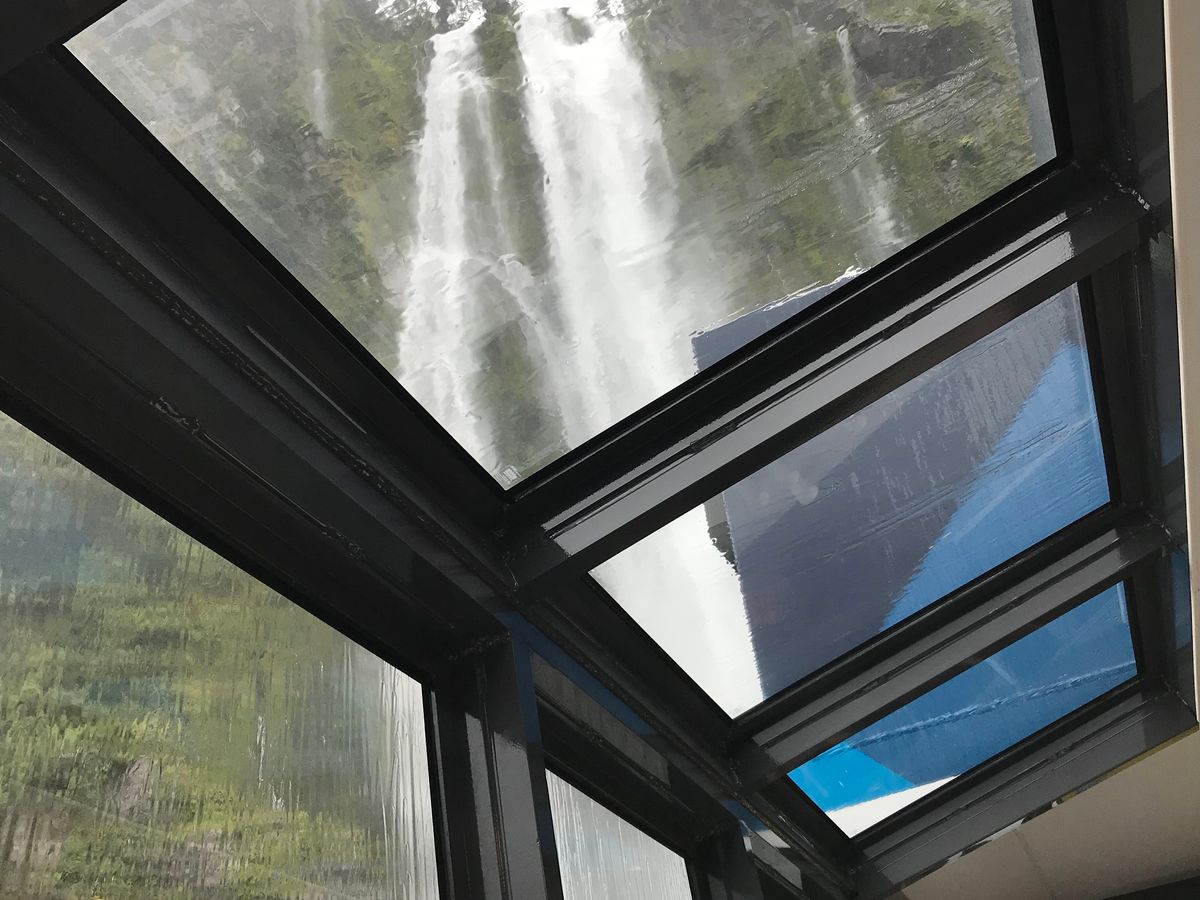 特にバスの天井がガラスなので、フィヨルドの谷間を走るときには両岸の岩山の上部も見渡せ迫力は満点でした。 ドライバーガイドの運転も徐行や見どころな場所での停車もあり十分に楽しめました。 ちょっと時間の長いのですが、帰りは同じ道を通りますので域と反対側の景色も復讐の意味で楽しむことができました。