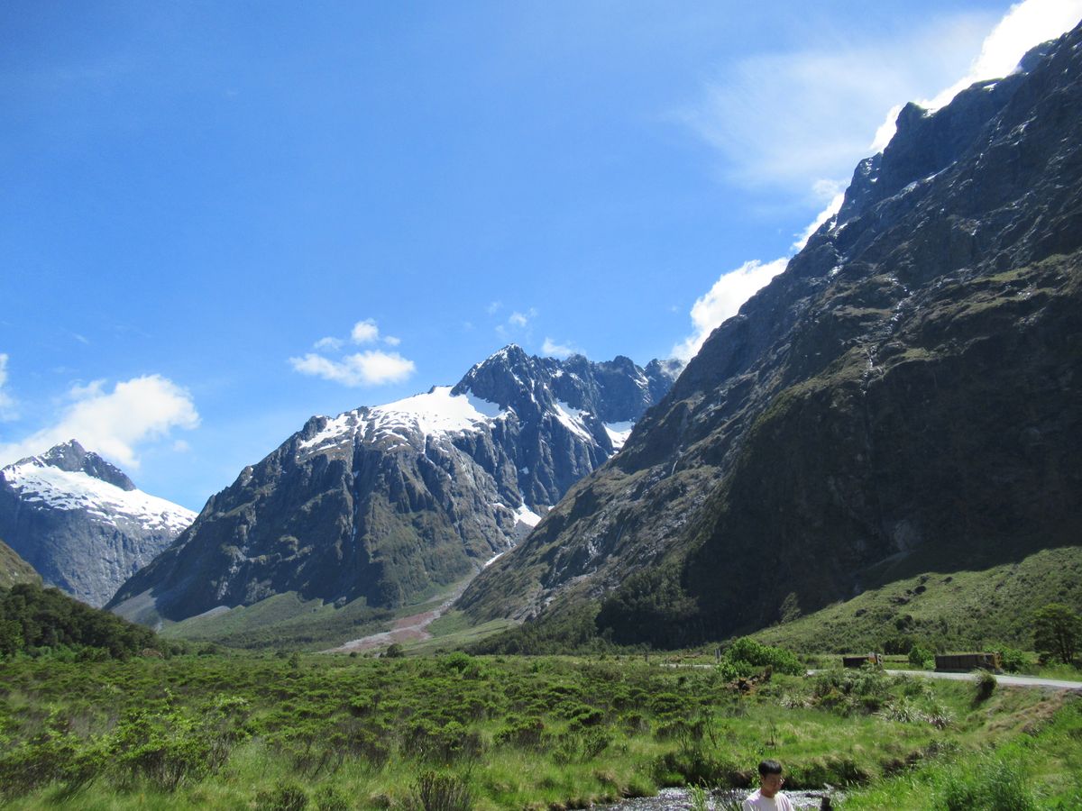 年間雨量が多い場所とのことで晴天は期待していなかったのですが、当日は雲一つない快晴で完璧な風景を満喫することができました。クイーンズタウンからミルフォードサウンドに向かう途中の景色も牧歌的な風景から山岳地帯の絶景も楽しむことができ完璧です。