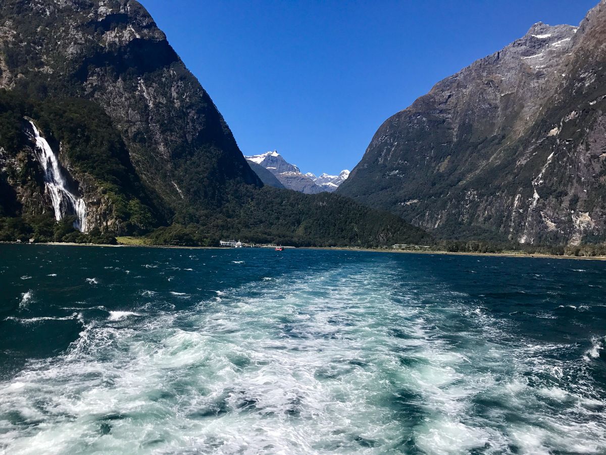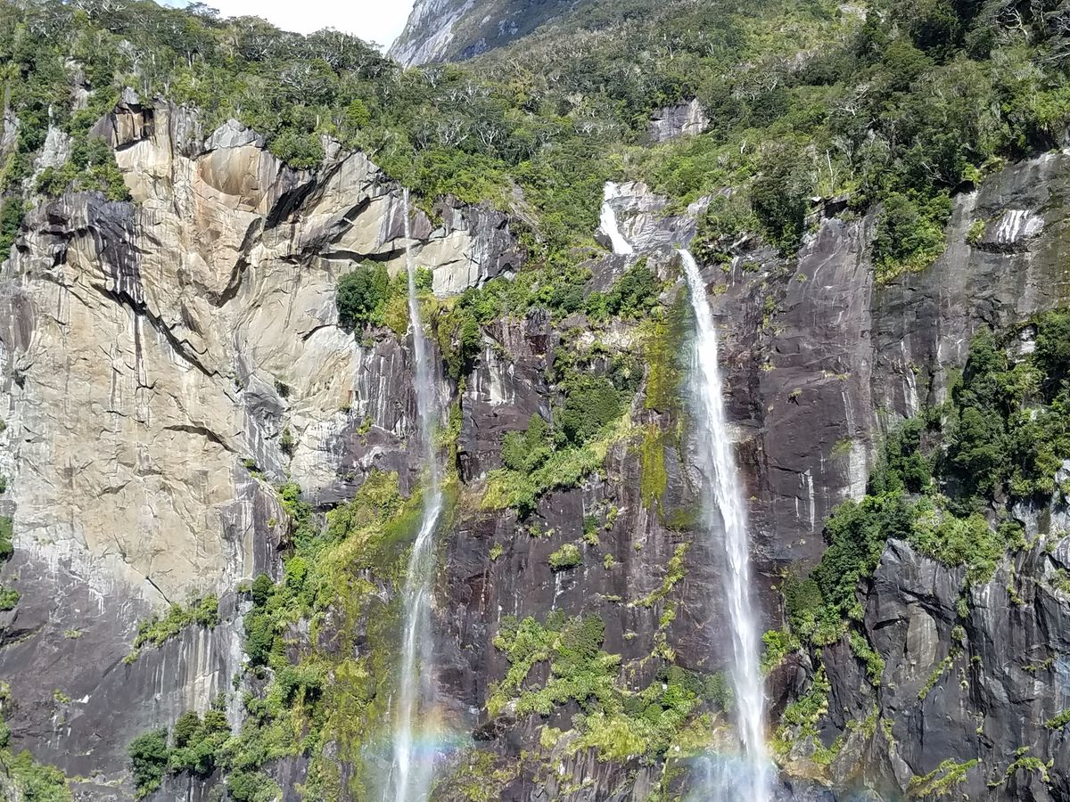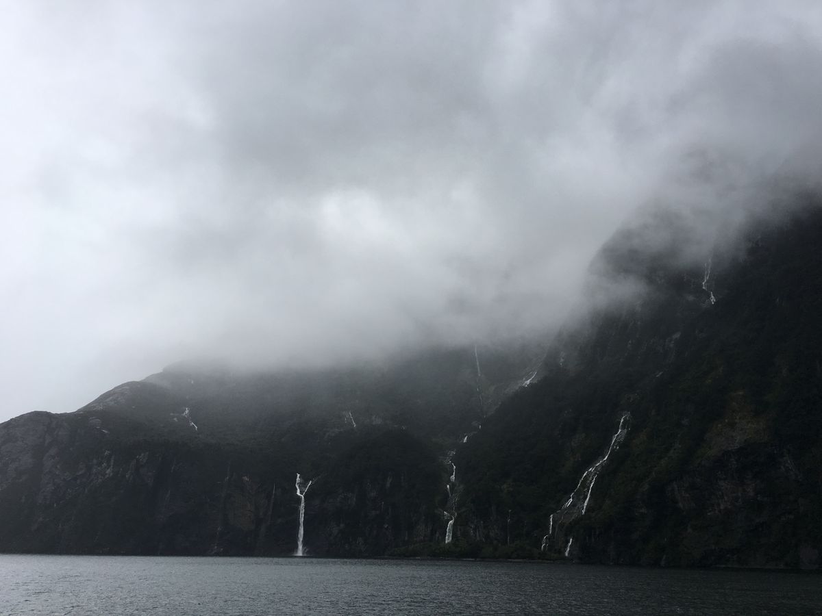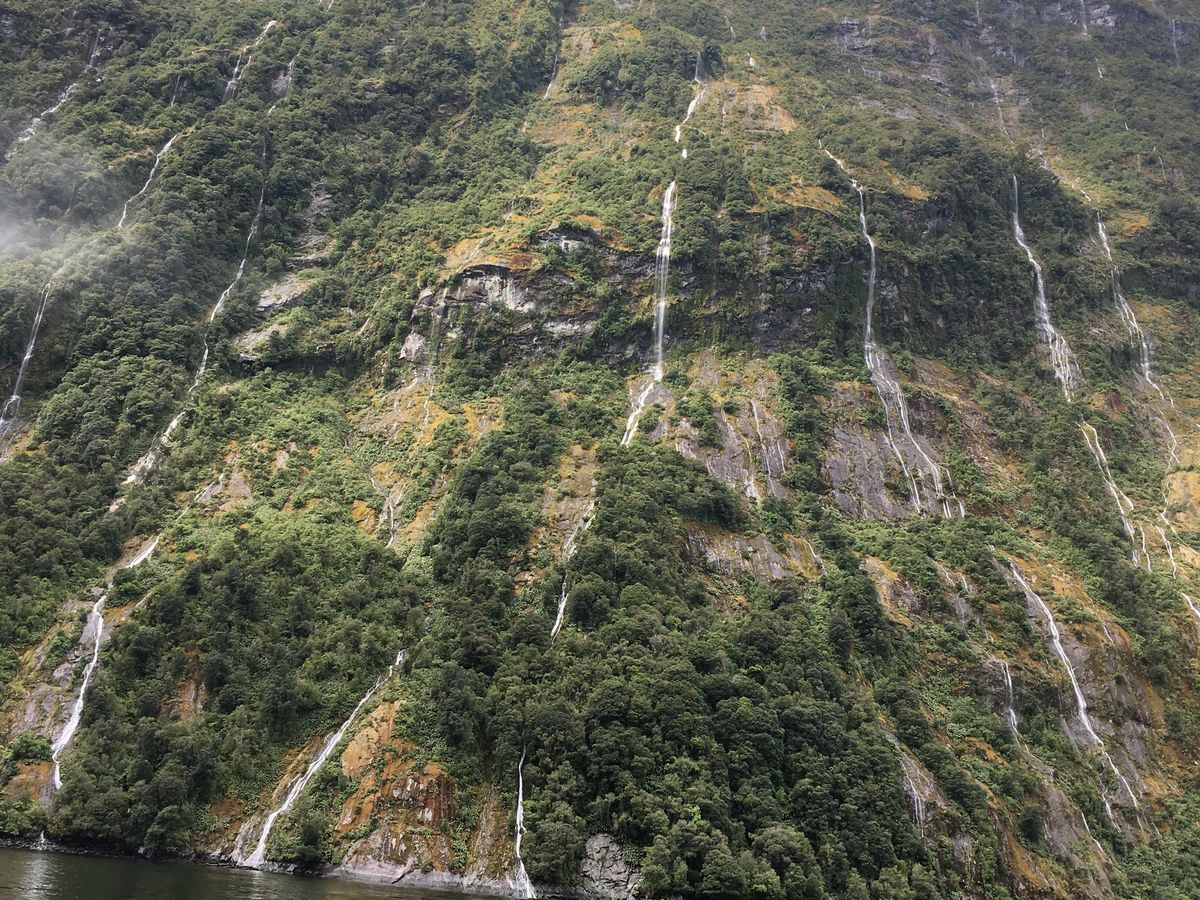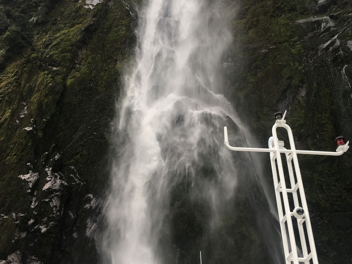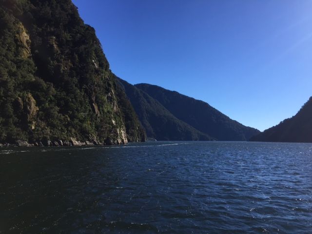 ミルフォードサウンドのクルージングでは滝のそばまで行ってくれるので、なかなかの迫力で良かったですね。意外と濡れますが…、それもなかなか楽しい感じでした。フィヨルド地形ももちろん綺麗で素晴らしかったです。