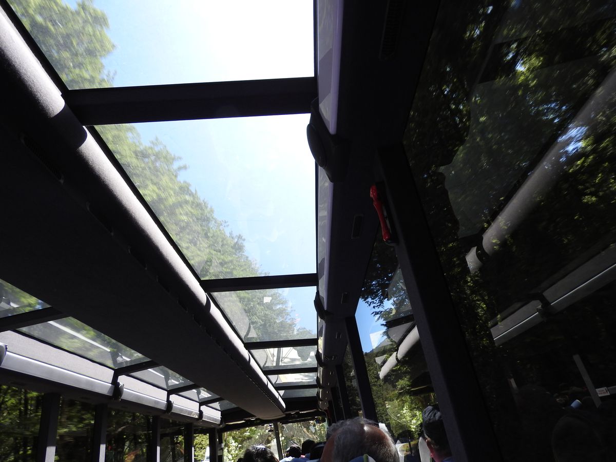 バスは、側面、天井とガラス張りで視界が広く快適です。