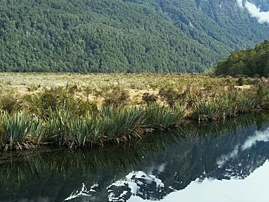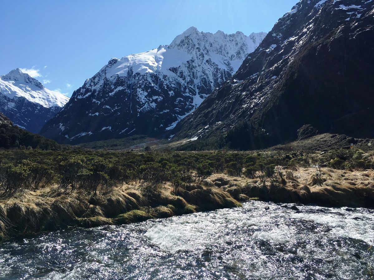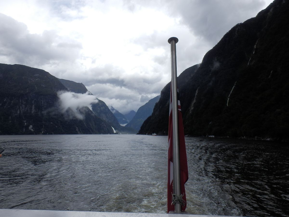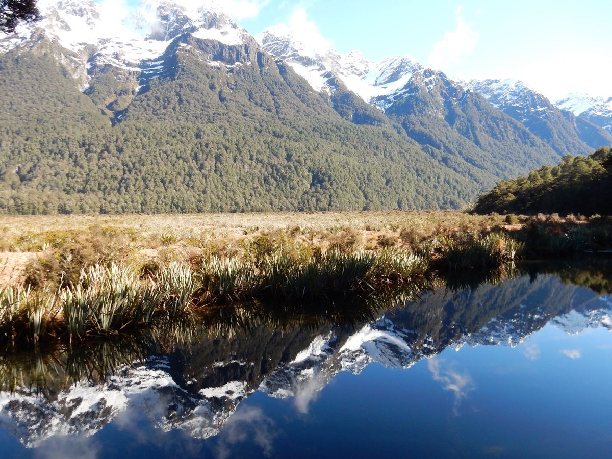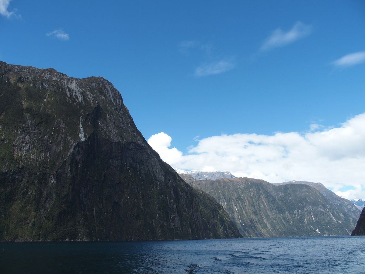 テ・アナウを出発すると、3回ドライバーさんお気に入りの写真スポットで5〜10分程度の休憩(内1回はトイレもありました)があります。山々が小さい湖?に写るミラーレイクや氷河によるU字谷など、それは美しく、フィヨルドに着く前から大感激です。また、前日に雨が降ったのおかげで、普段は見られない滝が多数みられました。(前日は雪崩もあって、ミルフォードサウンドへの道は封鎖されていて、このツアーは代替として、ダウトフル・サウンドへ向かったとのことでした)