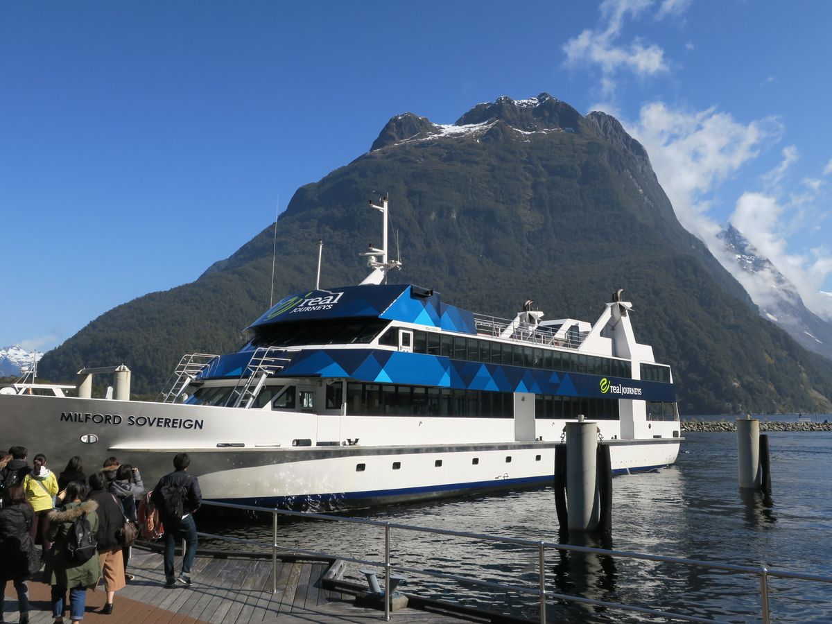 ミルフォードで船に乗船してすばらしい景色を堪能できました。