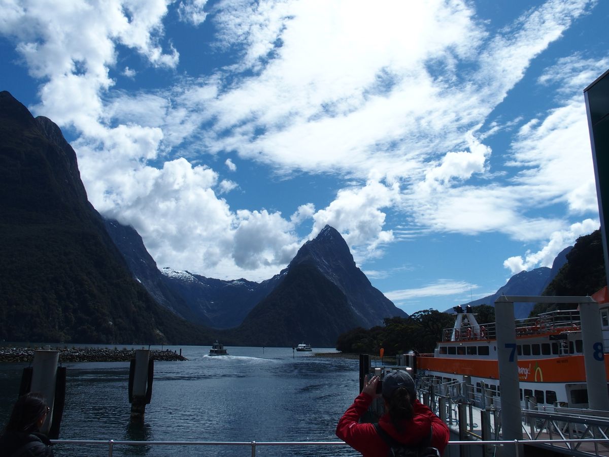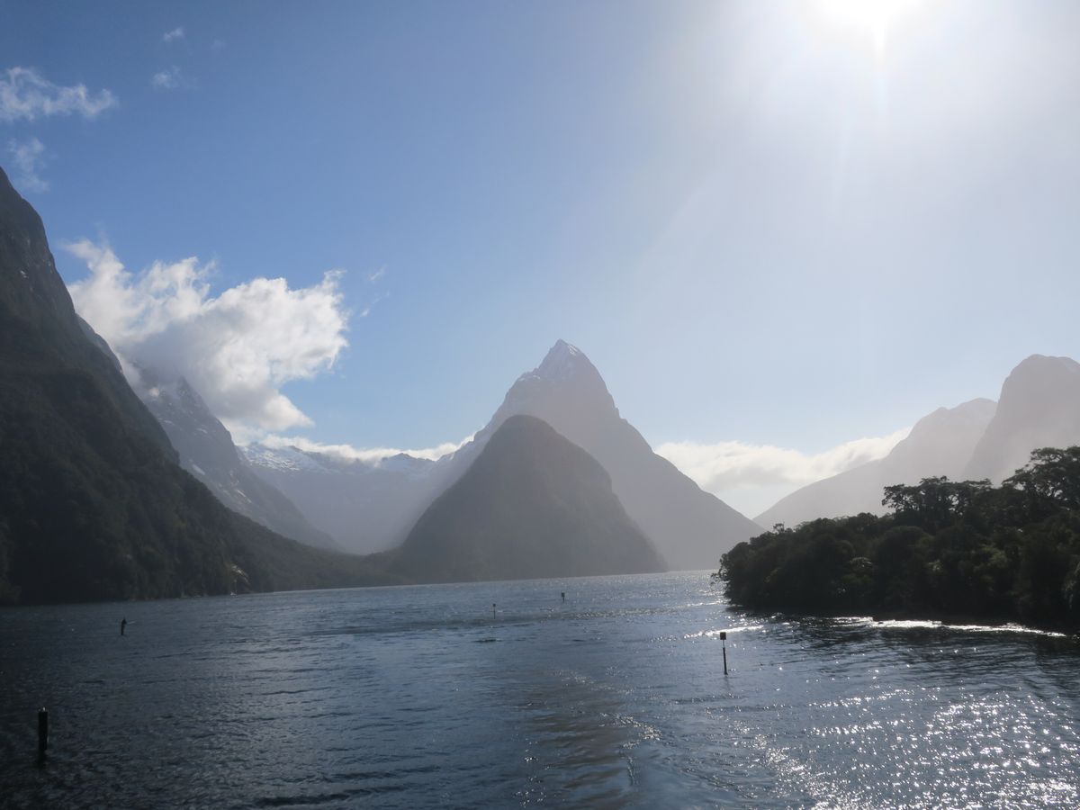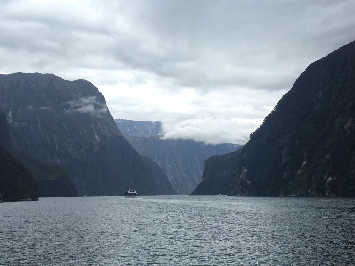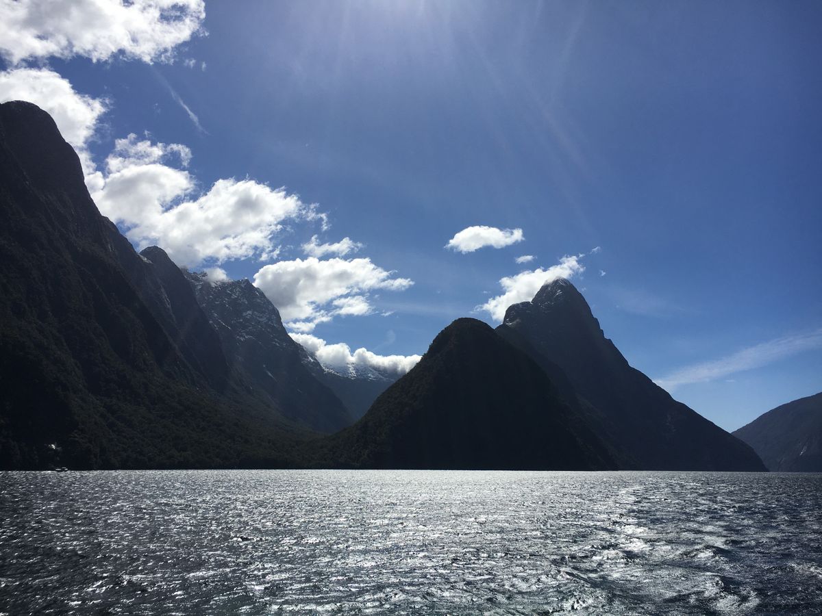 雄大なミルフォードサウンドに晴れ間が少し除いた景色、とても綺麗ですね。