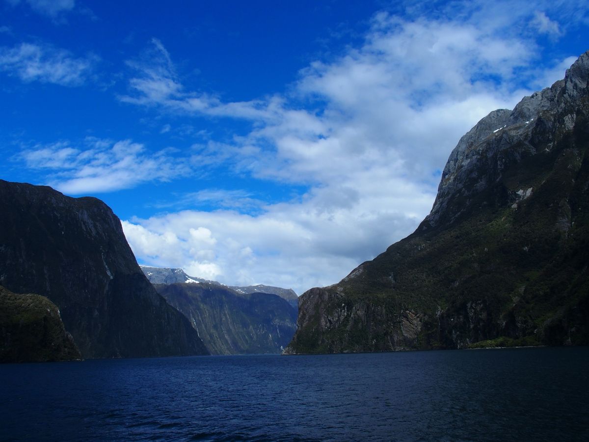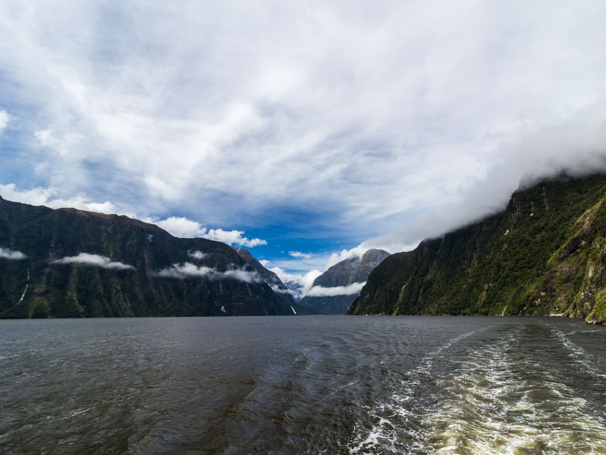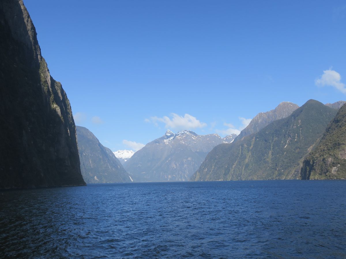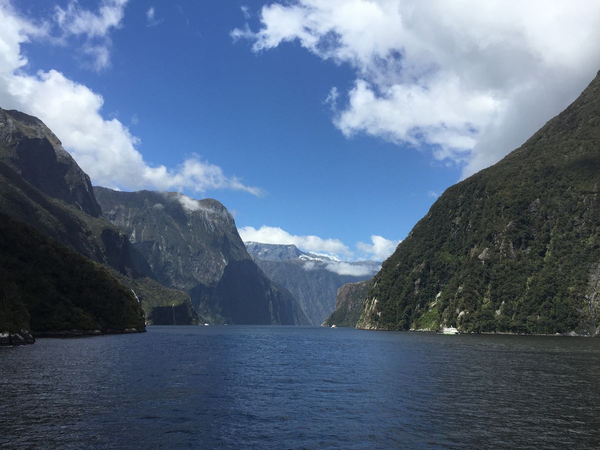 雄大なミルフォードサウンドに晴れ間が少し除いた景色、とても綺麗ですね。