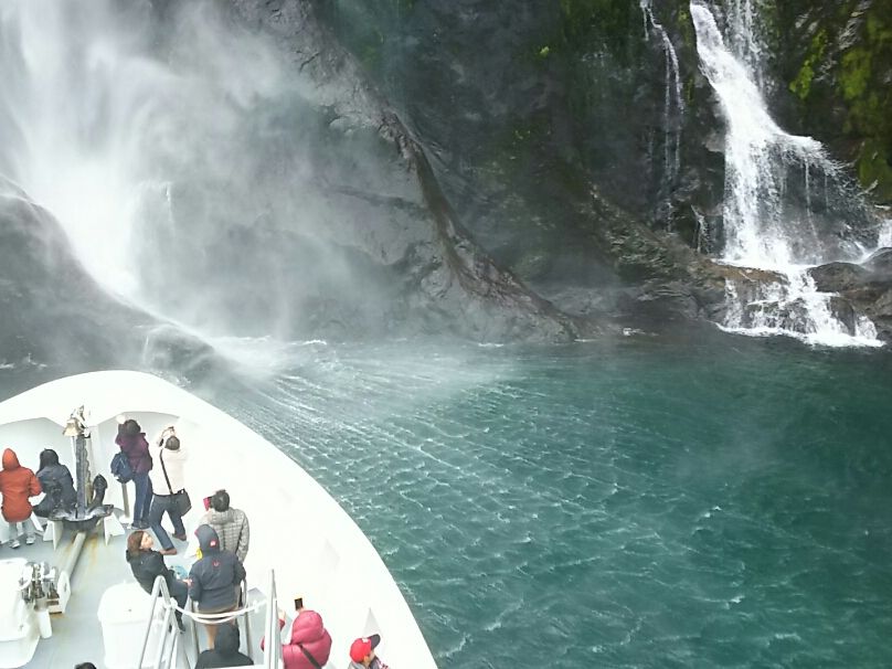 ミルフォードサウンドで乗る船は1階の甲板で見ると迫力を感じられます!!